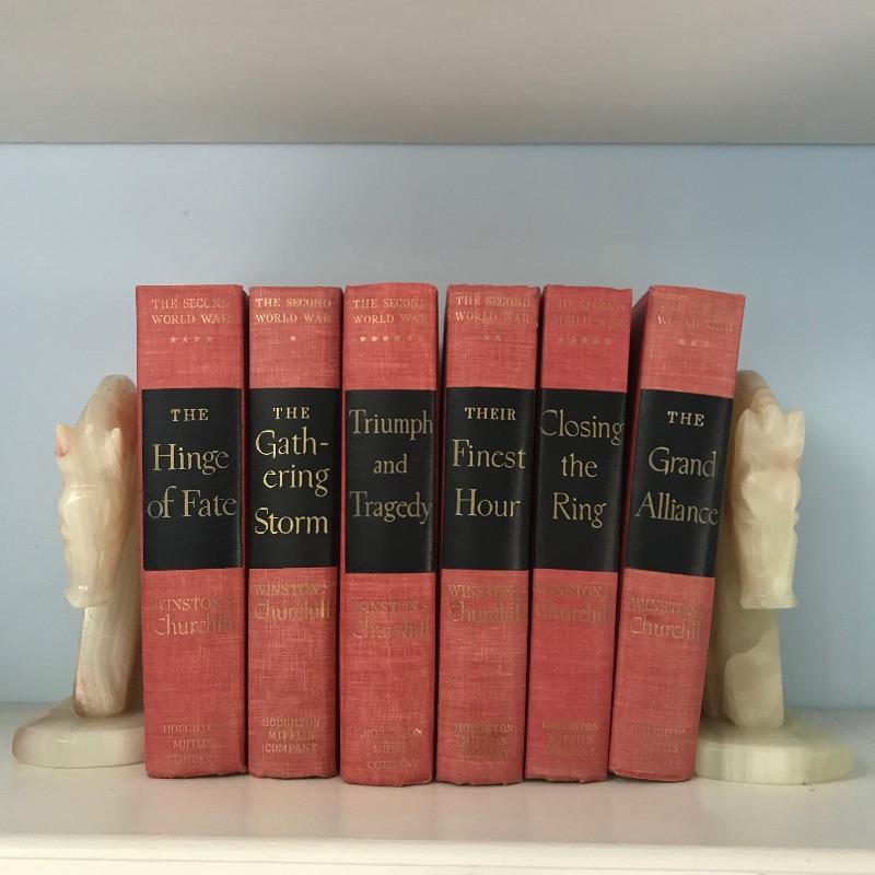 A six part collection from Winston S. Churchill: “The Second World War” with editions from 1948-1953. Books are in very nice condition. Make this collection a grand statement with gorgeous marble stallion bookends. Bookends measure 4” x 2.5” x 7.5. Standard shipping via UPS available.