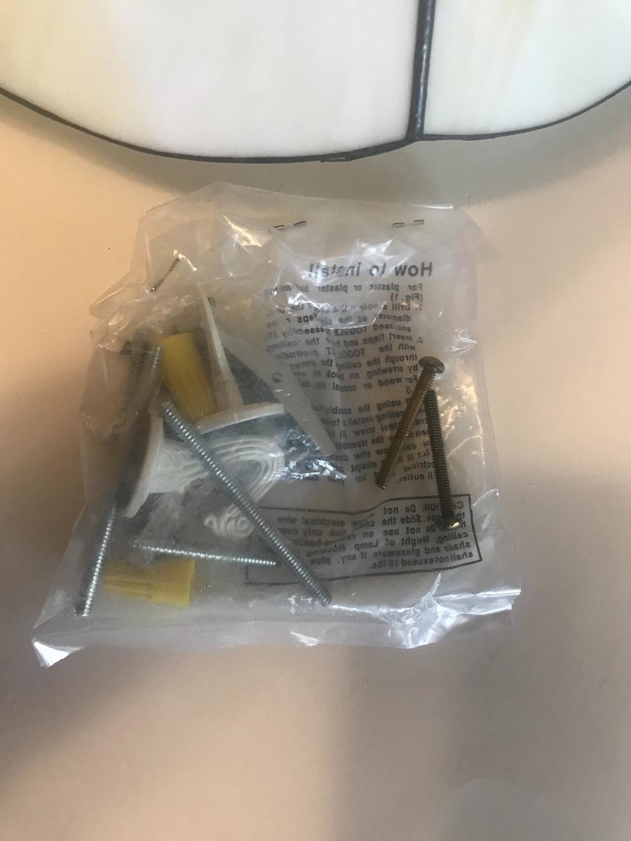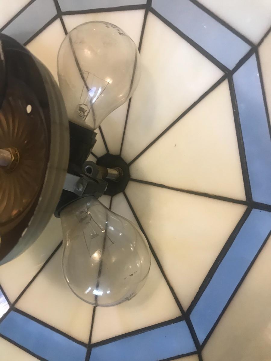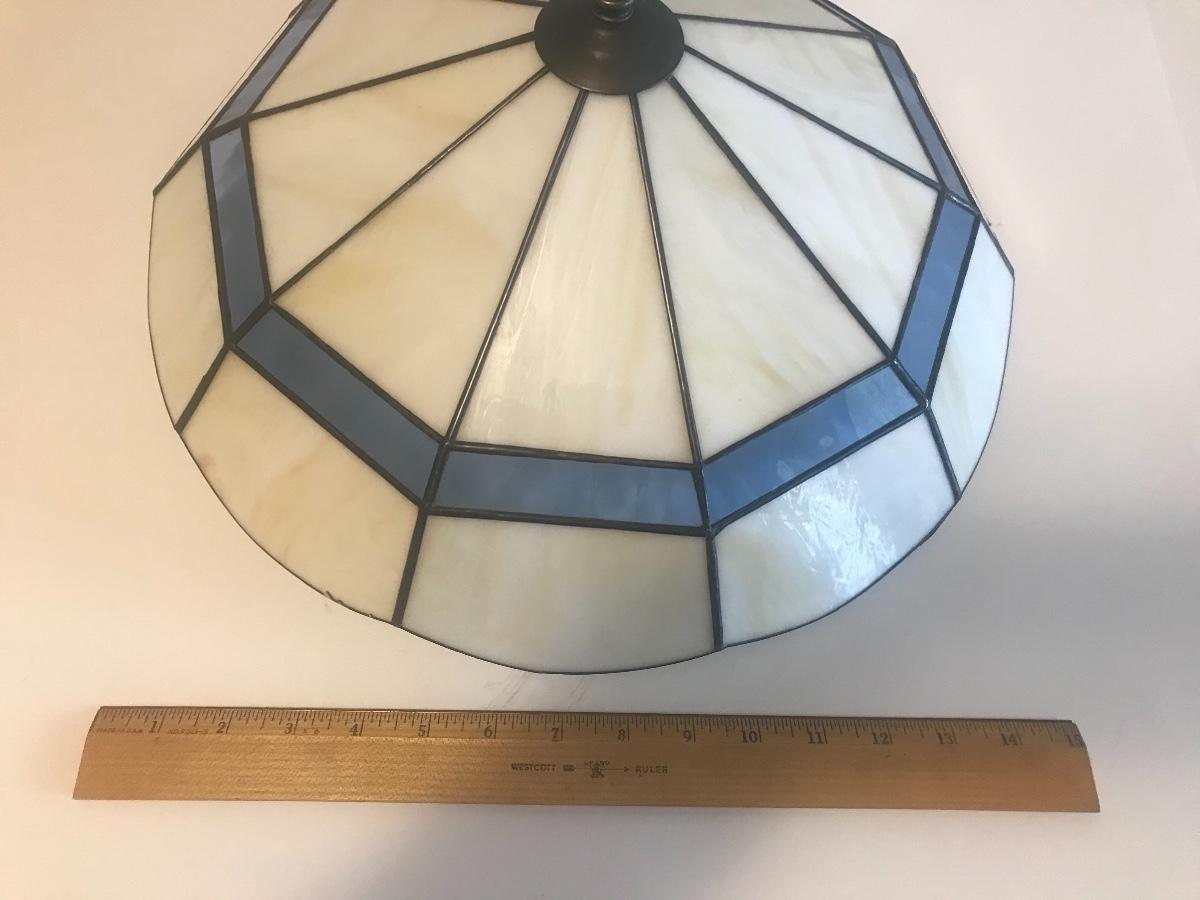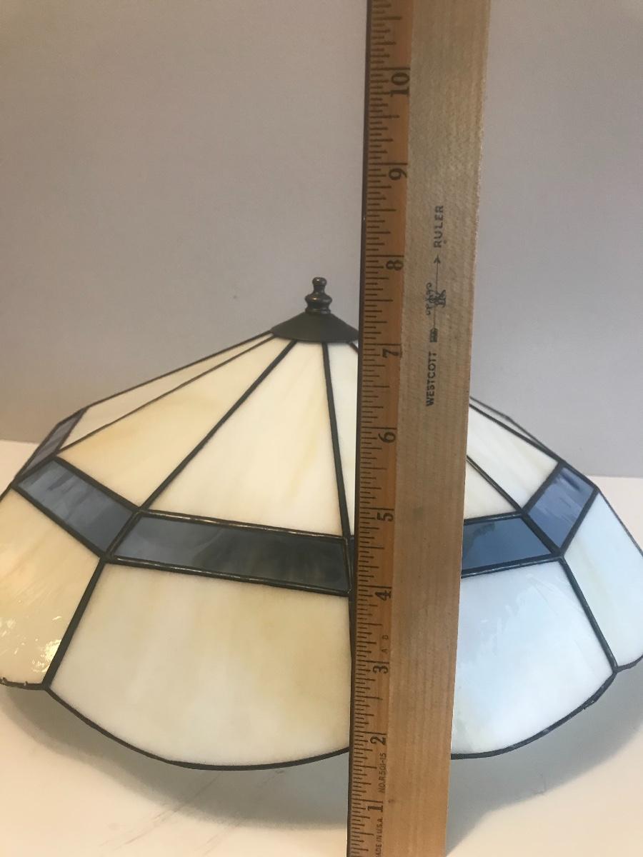 Ceiling light made with stained glass, ivory and blue. Stunning when lit. Includes hardware. Please see all pictures for