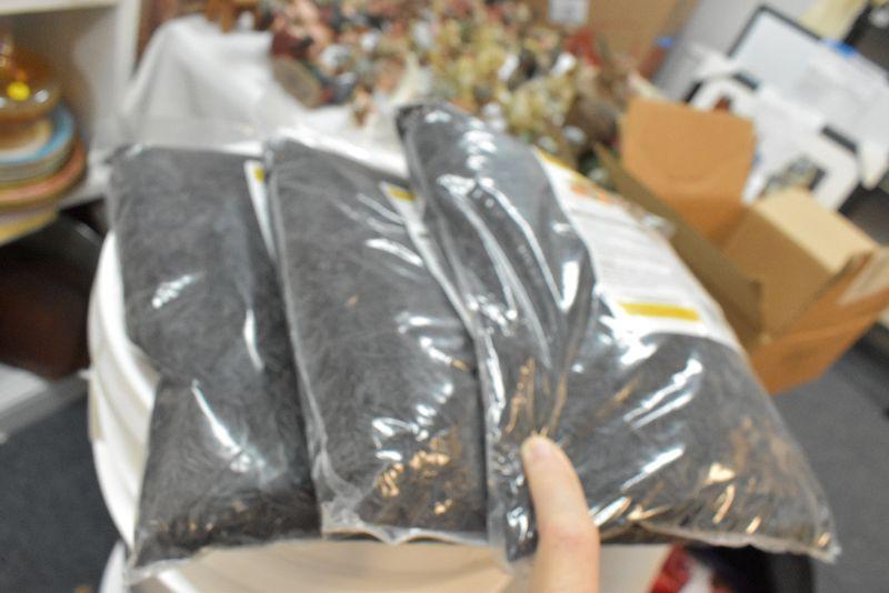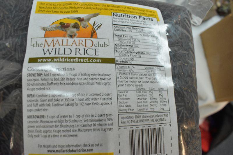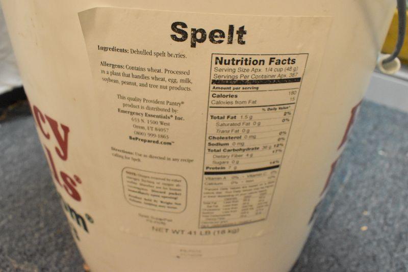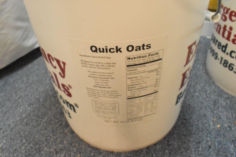 Four buckets of doomsday freeze dried food and three bags of wild rice. Buckets are: 19lbs of Quick Oats, 42 lbs of hard white wheat, 41 lbs of spelt, & 40 lbs of small red beans. Some dates are worn off but the one bucket is clearly marked 2014. They are sealed in a special container by a doomsday prep company called Emergency services essentials. Their website advertises 20 to 25 year shelf life so these should all last until 2034-2039. Rice is a special wild rice by the mallard club, Minnesota wild rice, you would be getting three 3 lb. bags.