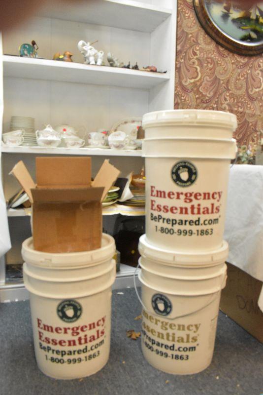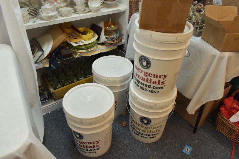 Lot 47:  Survival Food Large Lot 4 buckets plus box of rice.  Doomsday Prep 2035 expiration