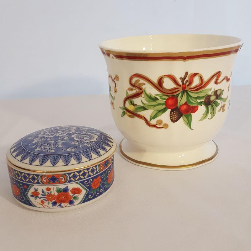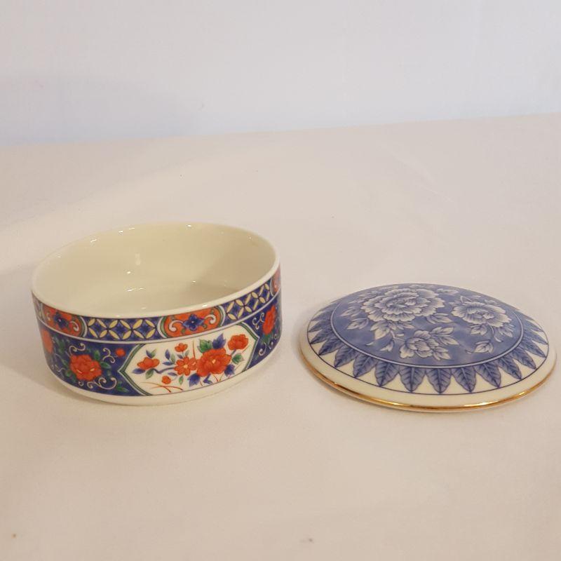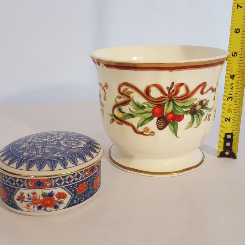 This Tiffany holiday bowl is perfect for sweet treats or a flower arrangement! The bowl is 6 x 5 inches and appears to be in great condition. The small bowl with lid also appears to be in excellent condition. The blue detailed bowl is perfect for jewelry or any of your treasures!