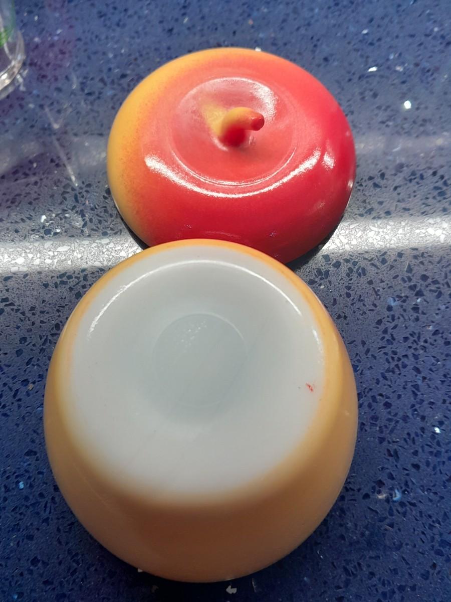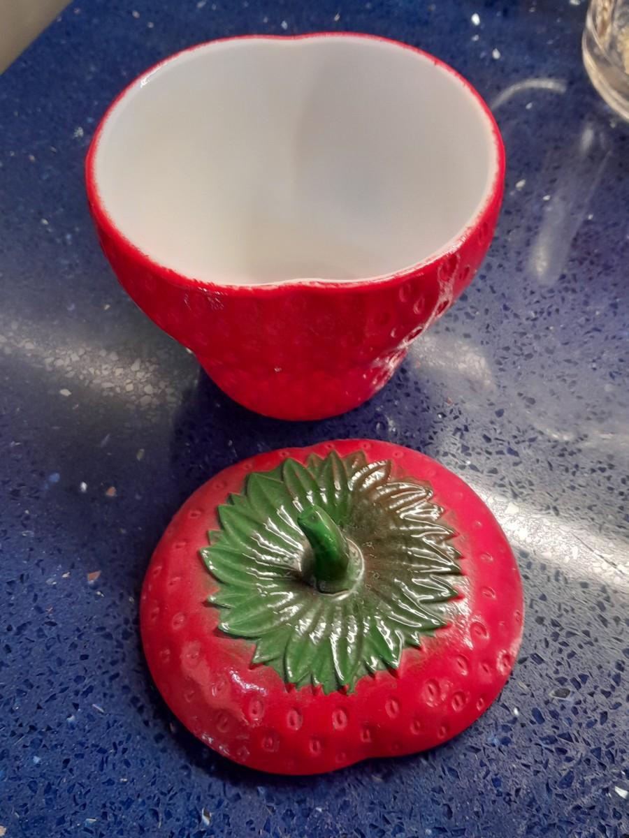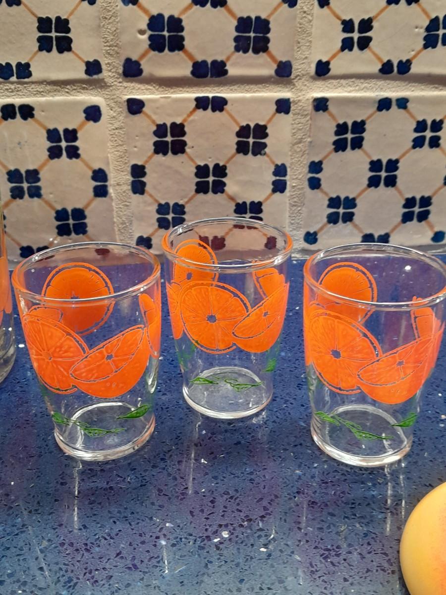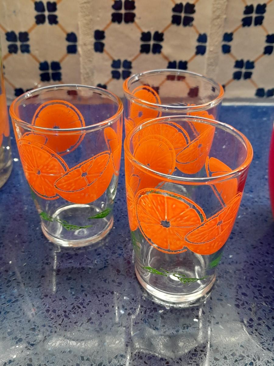 VINTAGE JUICE PITCHER AND GLASSES WITH FRUIT SHAPED, LIDDED DISHES