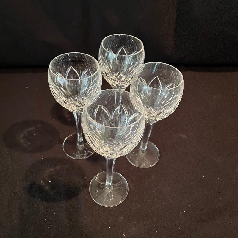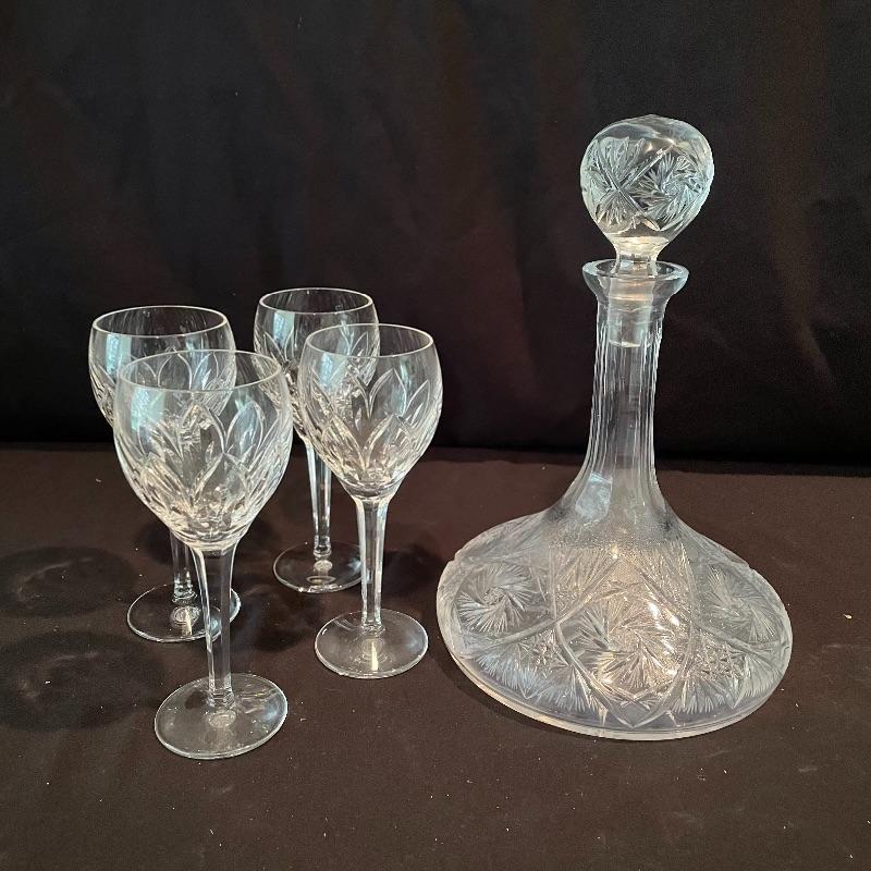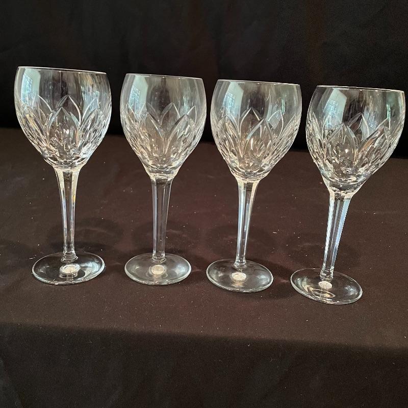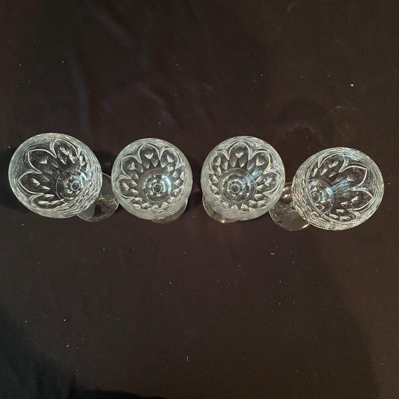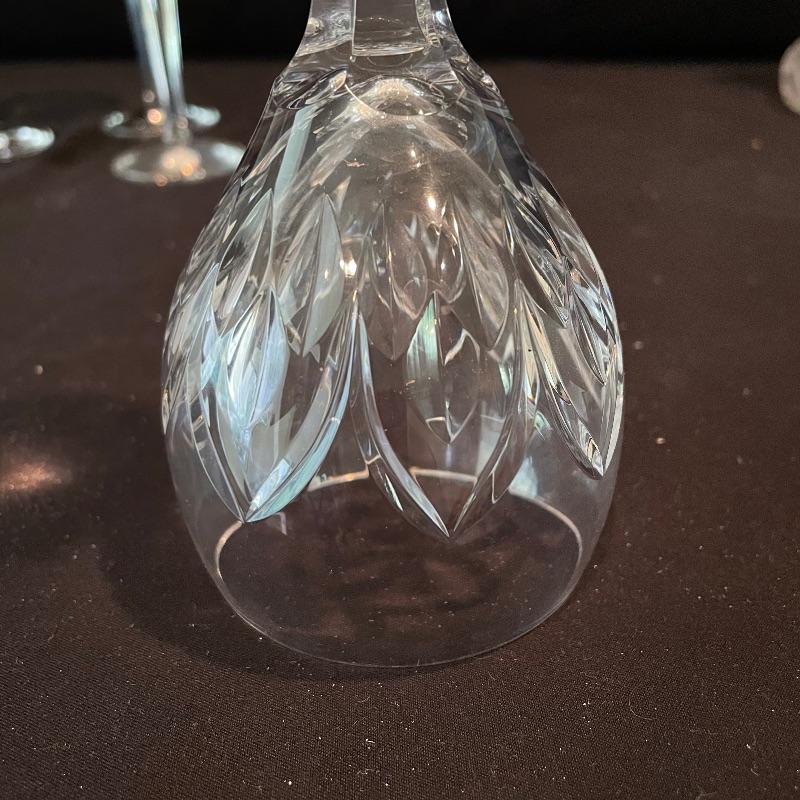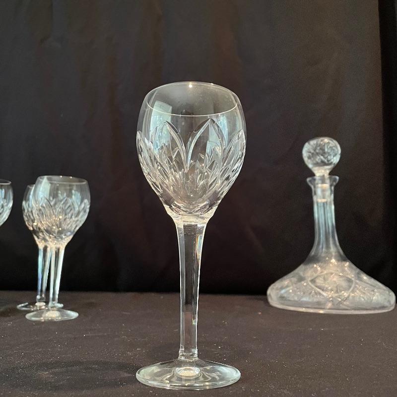 Experts say to let your wine aerate and we’ve got the most beautiful decanter here. A sleek and modern flow in an old world cut glass will allow more air into your bottle. Then delight your guests with these four elegant Ballylee glasses by Waterford. Waterford is well known for quality and class. The decanter is about 9” tall without the cut glass stopper. Currently there is some condensation in the decanter. Waterford box and wrapping included. See photos. Shipping available.