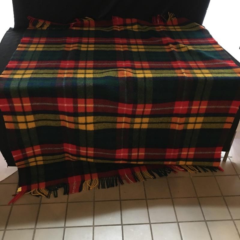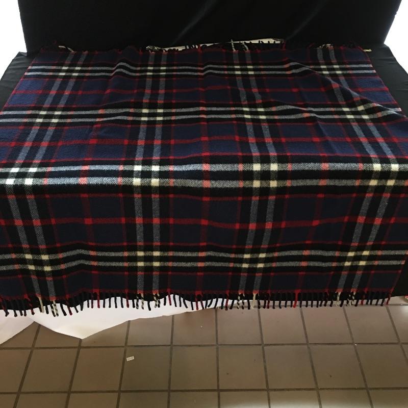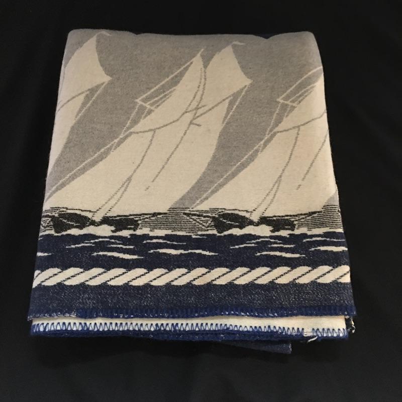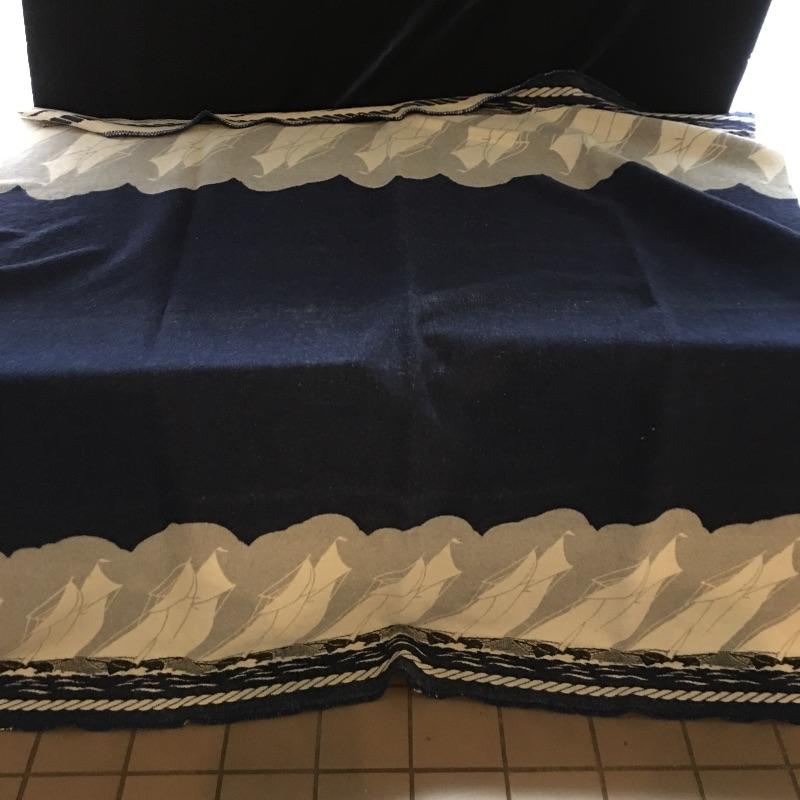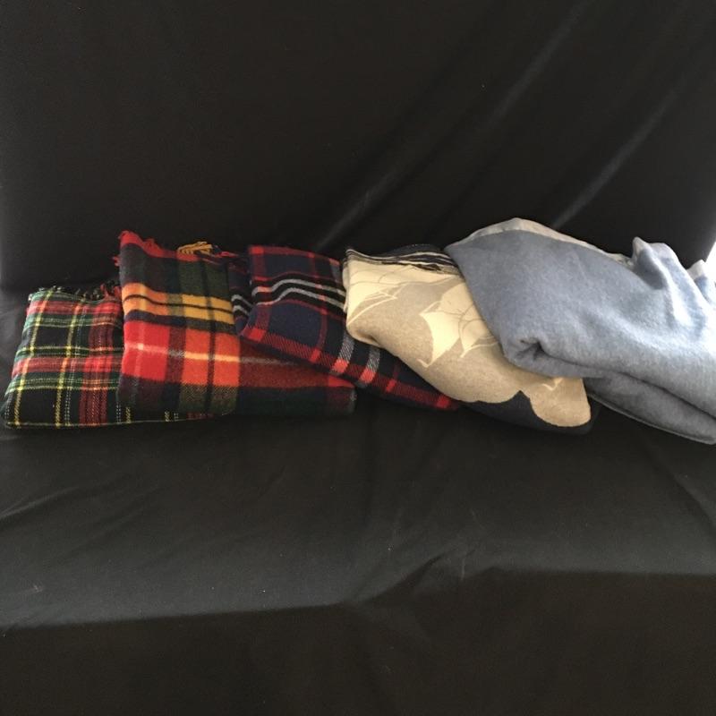 Five wool blankets. Lot includes Jenner blanket and four that are unmarked. A great array of plaids with a solid and a sailboat motif blanket. Keep yourself all warm and snuggly with this batch of blankets. Solid blue blanket measures 63” x 78”.