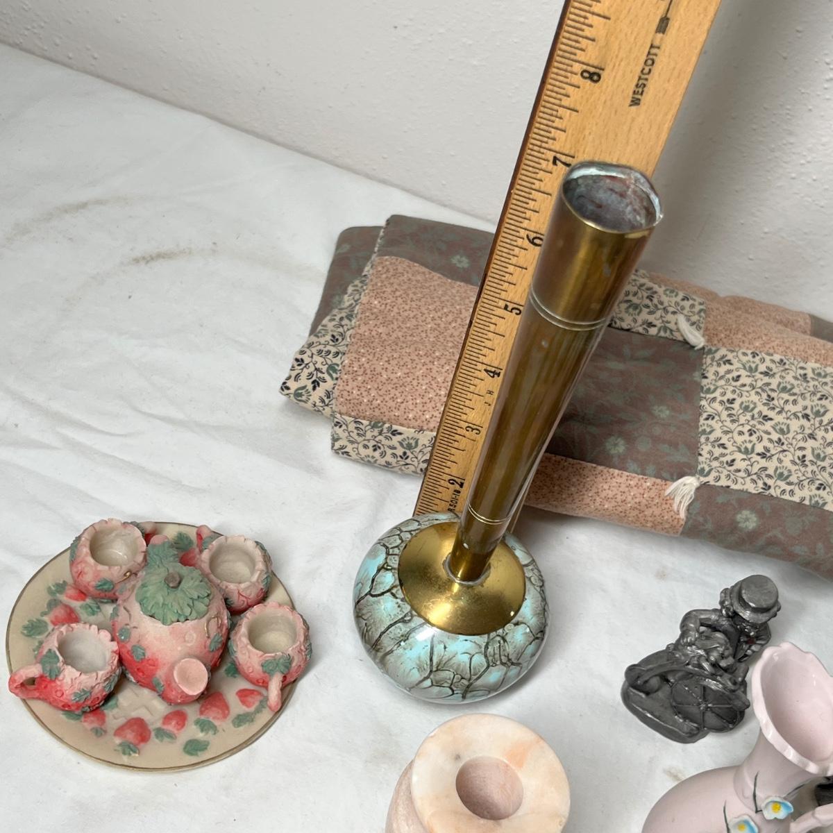 8. Sizes are approximate, you can estimate as our lot number signs are 3.5" long. Also we use an 18" & 36" measuring stick.  We try on certain things to do actual measurements. No guarantees on actual sizes, we try our best!