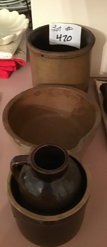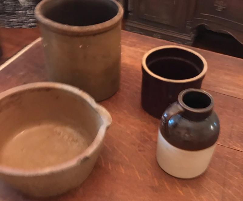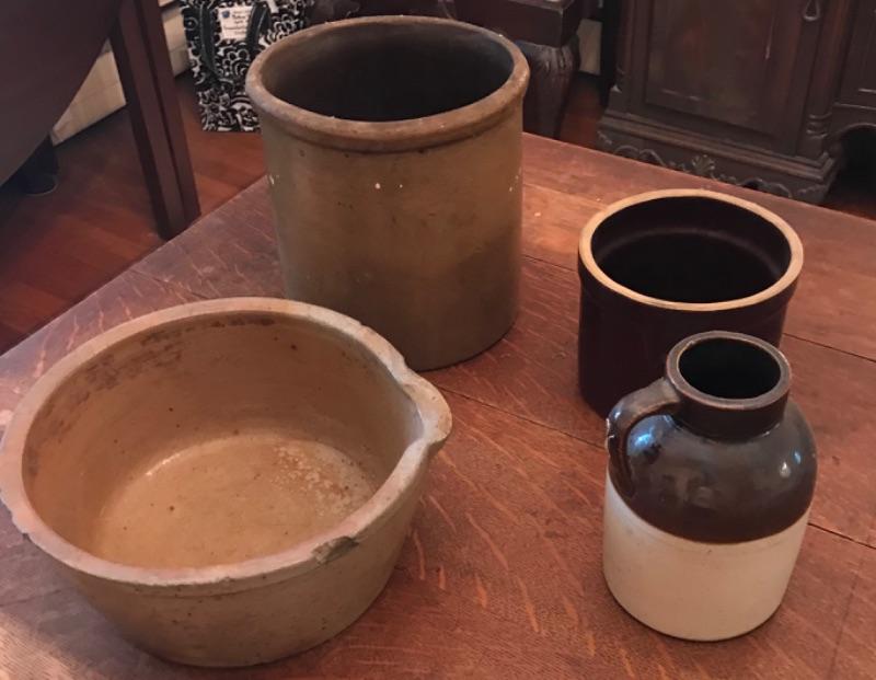 2 Antique Salt GLazed Crocks. a batter bowl and regular crock