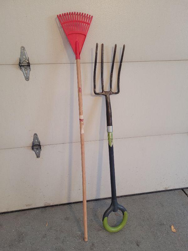 Lot #471: (2) Garden Pitchfork and Rake Tools