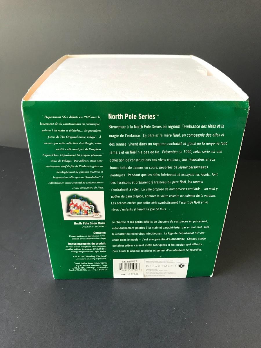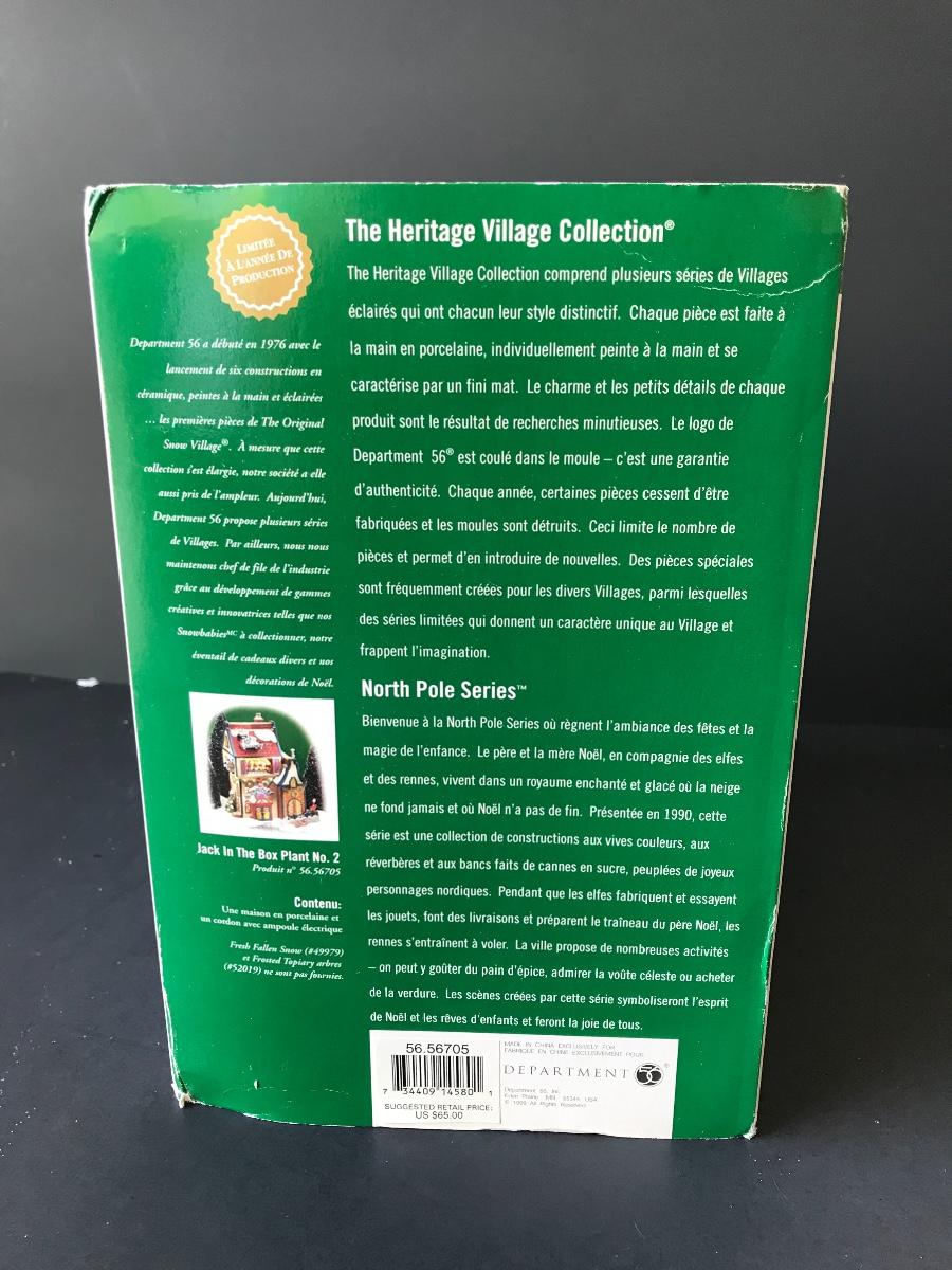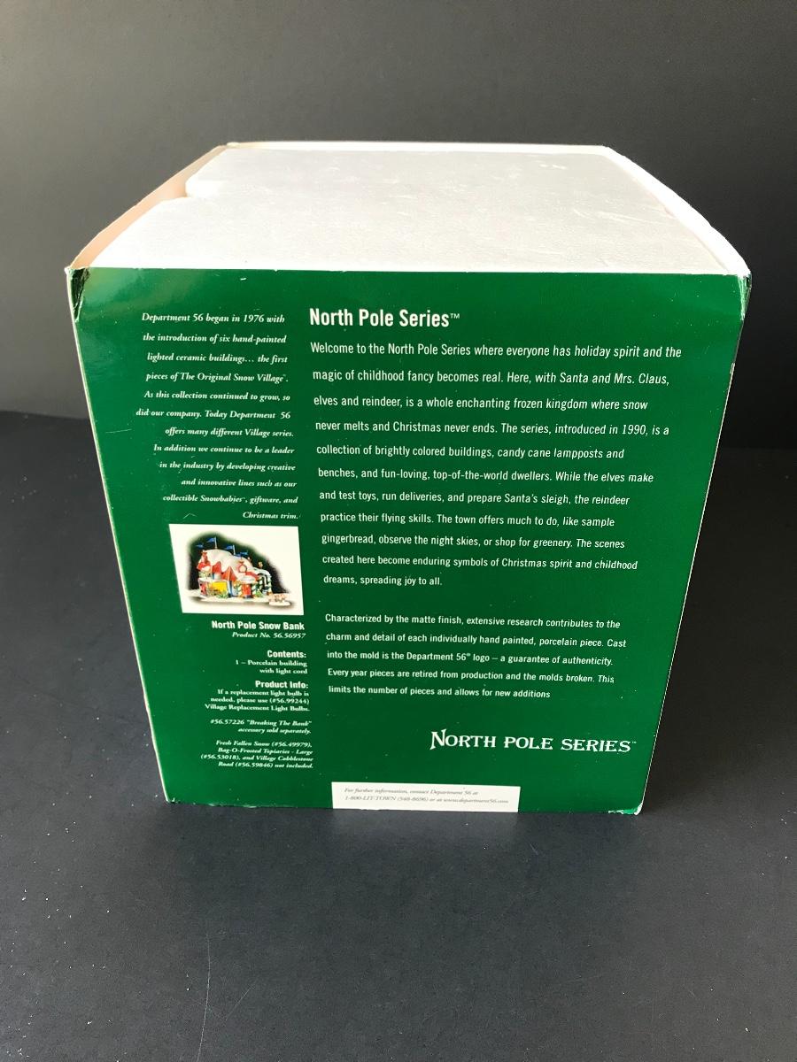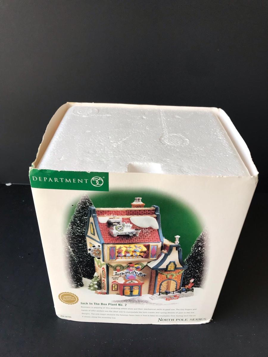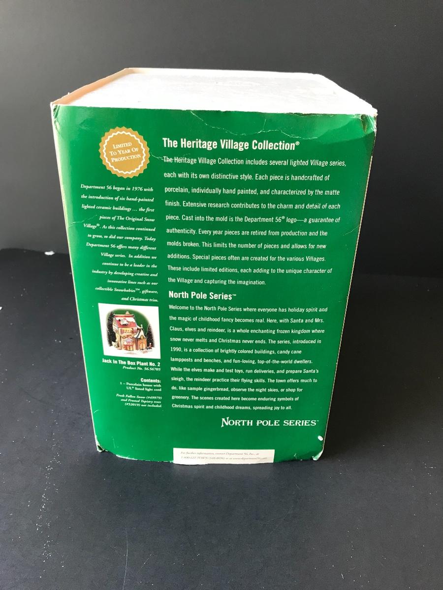 Lot of 2 Department 56 Christmas Display Decorations - North Pole Series - North Pole Snow Bank and Jack in the Box Plant No. 2. All Holiday items in this auction are as-seen. The client collected a lot of holiday pieces and some are new in box, some were displayed once and come with original box, and some have been displayed and come with no box. They are all pre-owned in some fashion and have been stored in an attic or on shelf in library. Please see all pictures. The pictures show condition, measurements if taken, and what is included in the lot. Due to the large amount that we photograph and the time frame, we are not always able to take measurements. All items unless noted, are pre-owned and have been used. Thank you