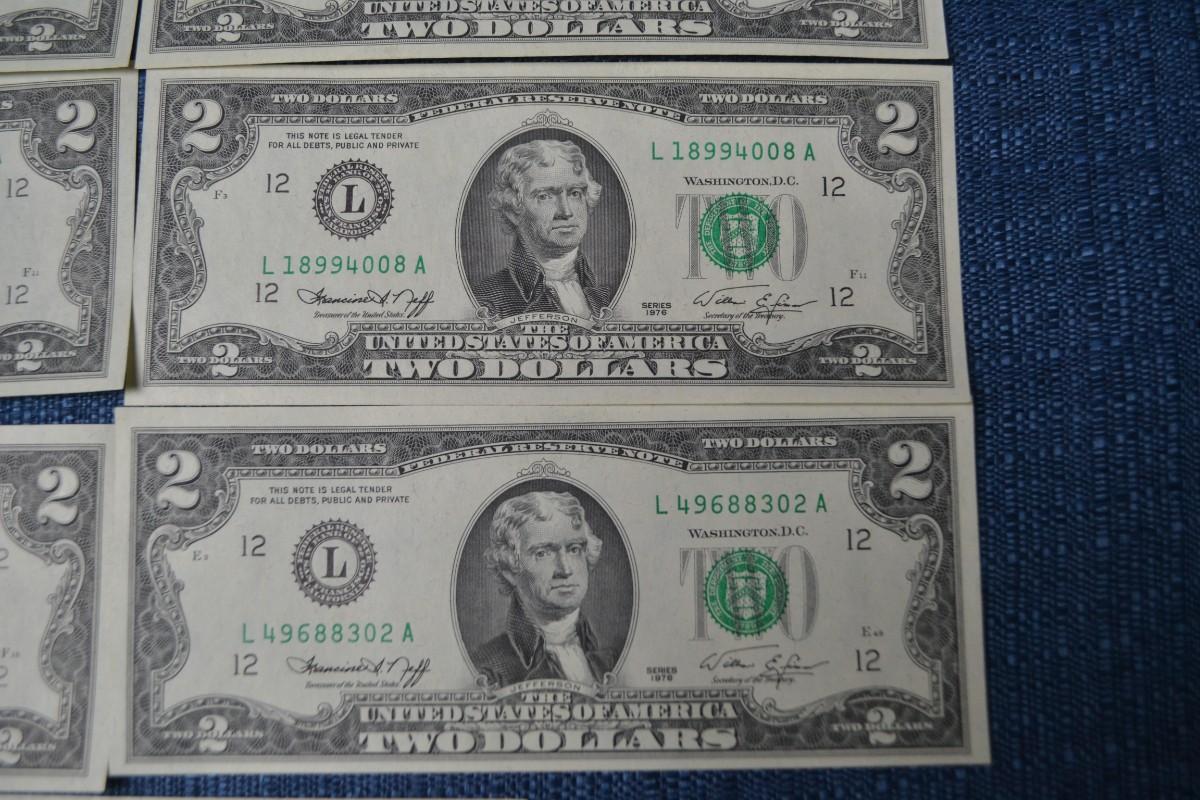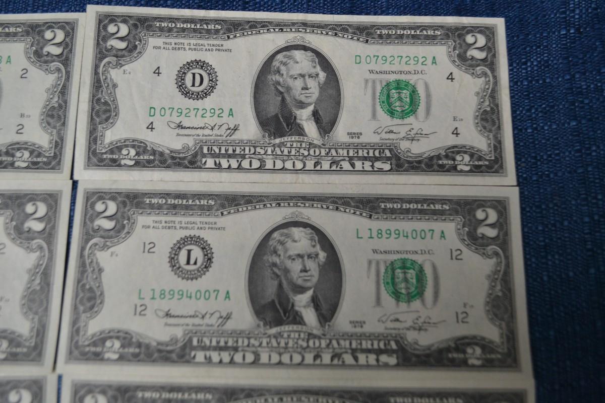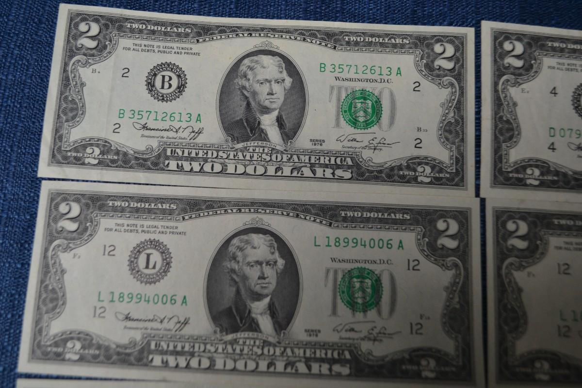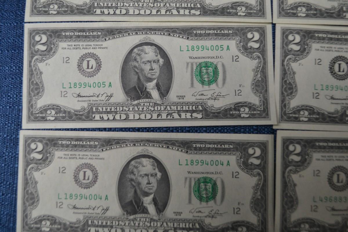 LOT 471. EIGHT TWO DOLLAR GREEN SEAL BILLS AND ONE DOLLAR SILVER CERTIFICATE