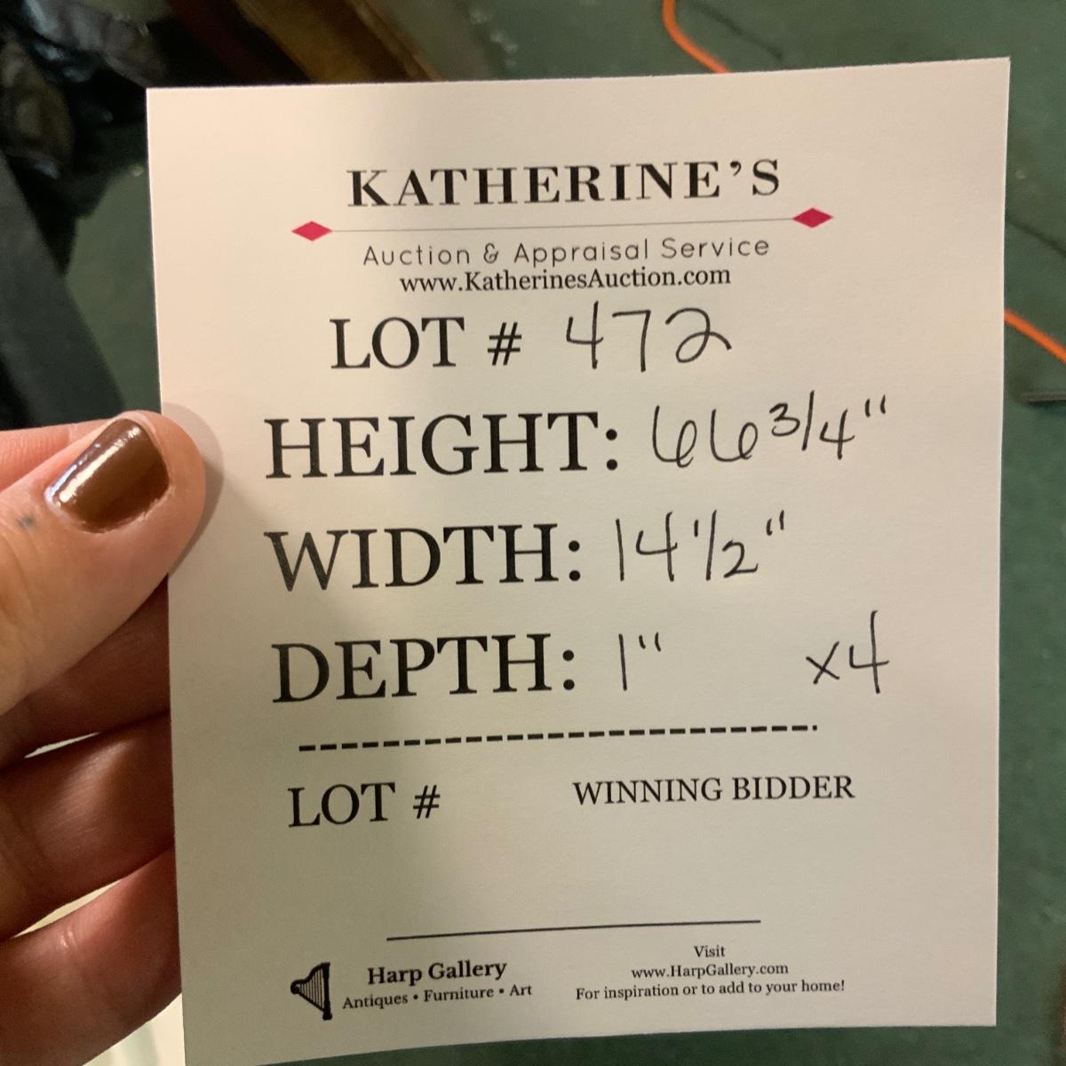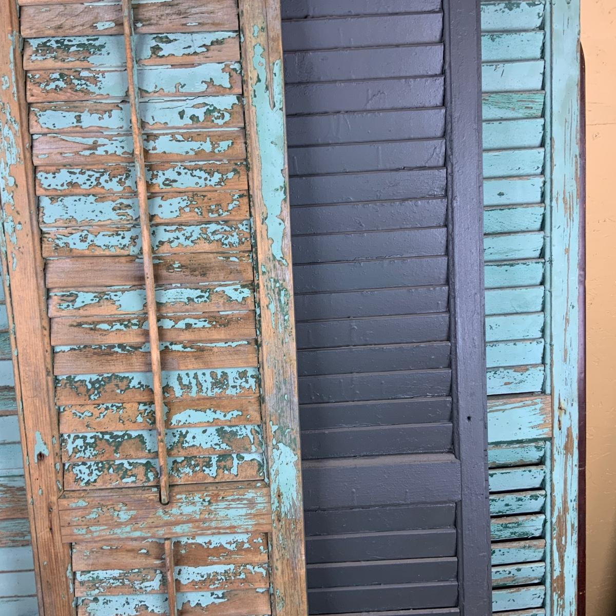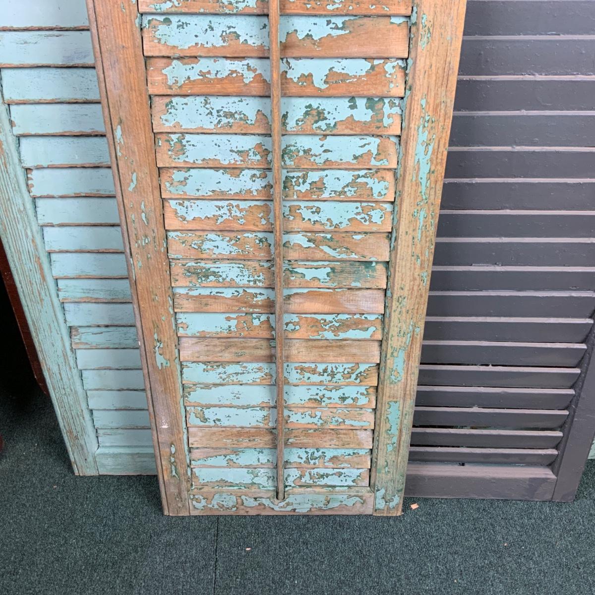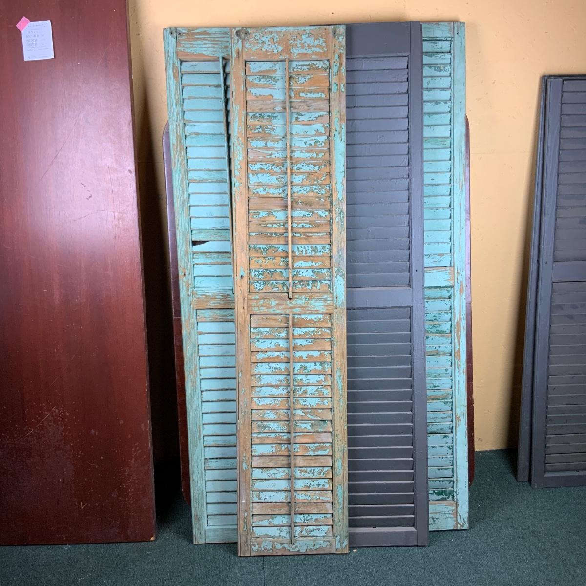 Four Tall Chippy Paint Shutters. Put them in your garden! Add some whimsy! //::\\ Please see photos for details and condition. No attempt has been made to hide any imperfections. All items listed in this auction are warehouse items, and need to be cleaned. A majority of the items need restoration as well. All items are sold AS IS and WITHOUT GUARANTEE. If you are uncertain about an item, DO NOT BID. Due to the nature of this online auction in-person inspection is HIGHLY recommended. All Sales are FINAL. Pick Up Times are FIRM. Please confirm with your own schedule that you can pick up in the scheduled times listed in the Terms and Conditions. Any questions please message the auctioneer. DO NOT Contact The Harp Gallery.