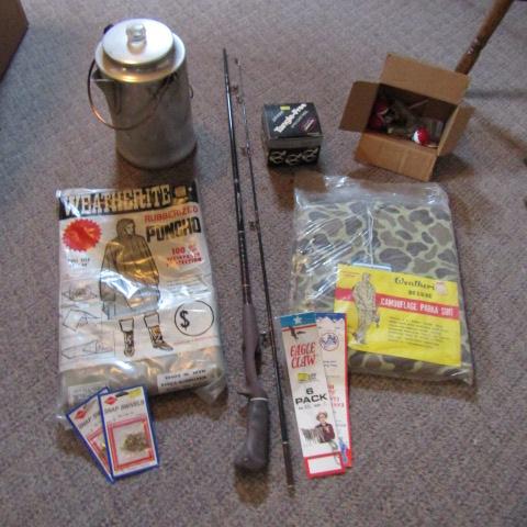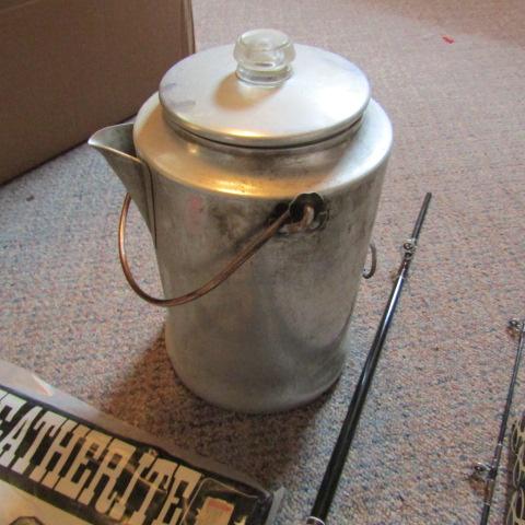 SMALL AMOUNT OF TACKLE AND FIRE PIT COFFEE POT