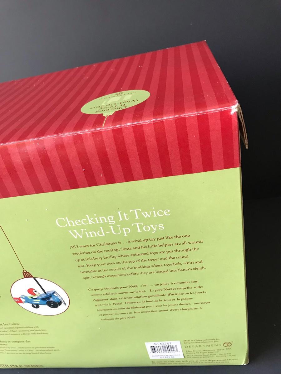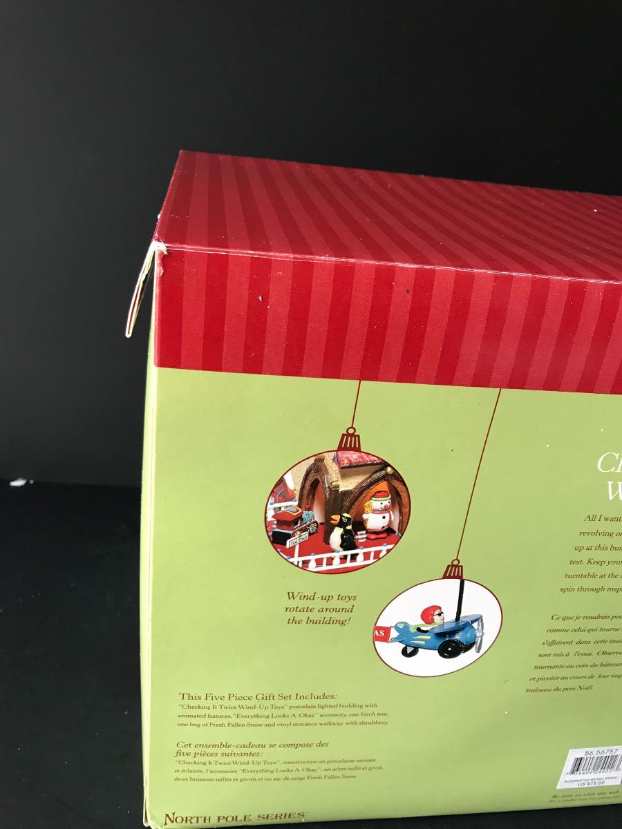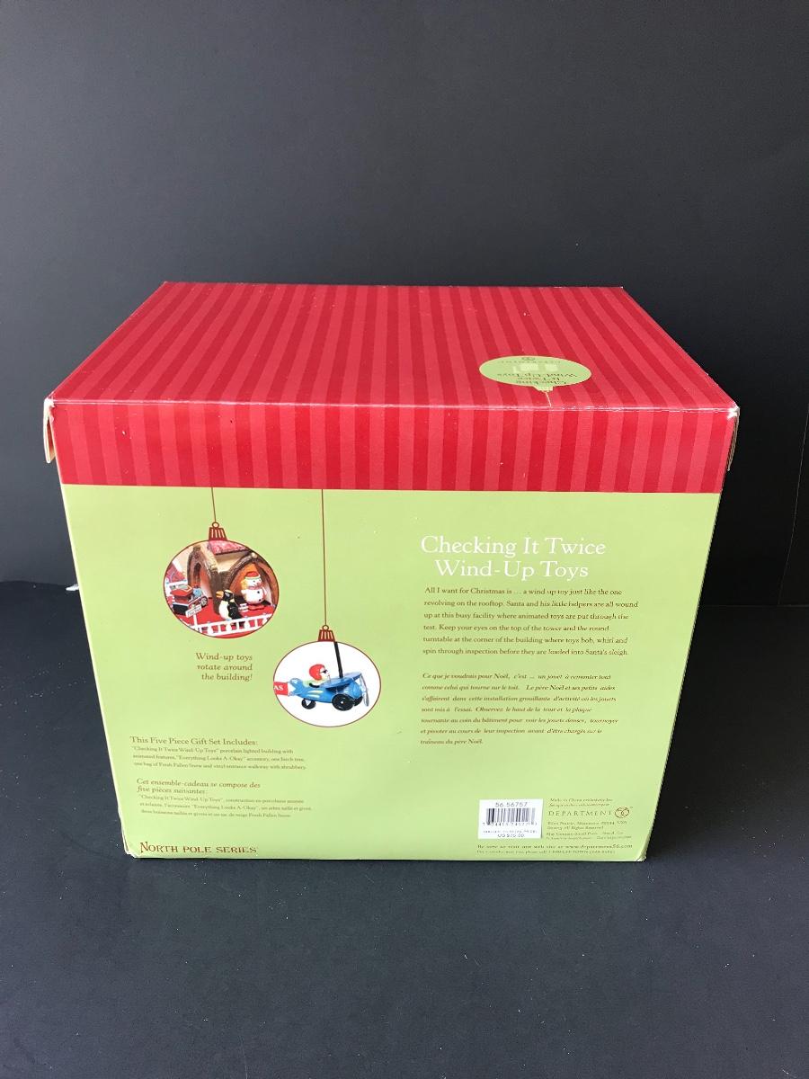 Checking It Twice - Department 56 - North Pole Series. All Holiday items in this auction are as-seen. The client collected a lot of holiday pieces and some are new in box, some were displayed once and come with original box, and some have been displayed and come with no box. They are all pre-owned in some fashion and have been stored in an attic or on shelf in library. Please see all pictures. The pictures show condition, measurements if taken, and what is included in the lot. Due to the large amount that we photograph and the time frame, we are not always able to take measurements. All items unless noted, are pre-owned and have been used. Thank you