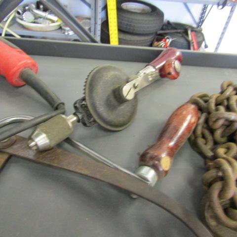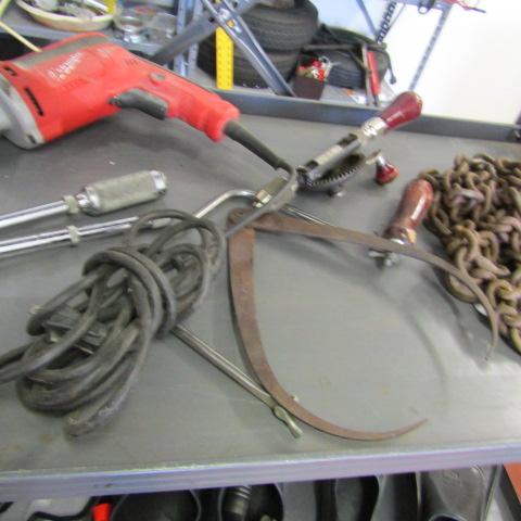 VARIETY OF HAND TOOLS AND CORDED DRILL