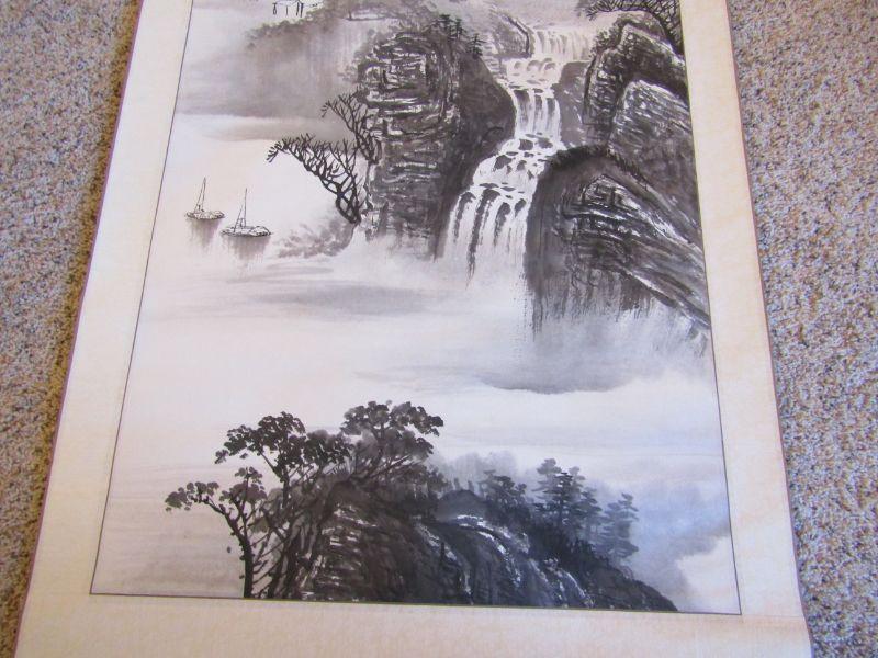 THIS SCROLL HAS WATERFALL AND BOATERS