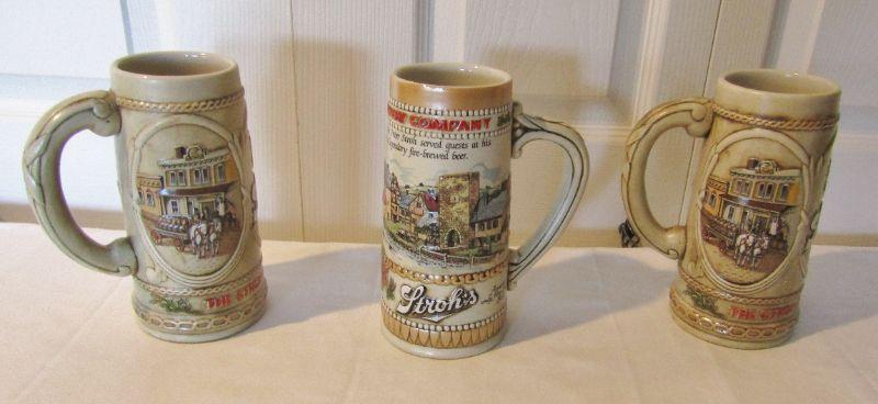 THREE EXCLUSIVES STEINS MANUFACTURED BY CERAMARTE BRAZIL FOR THE STROH'S BREWING COMPANY
