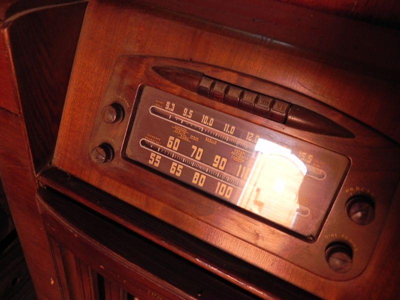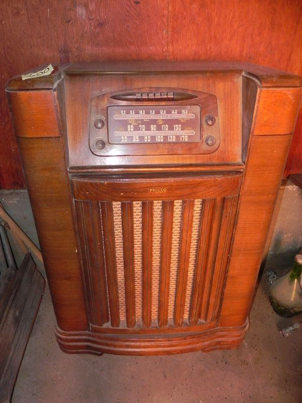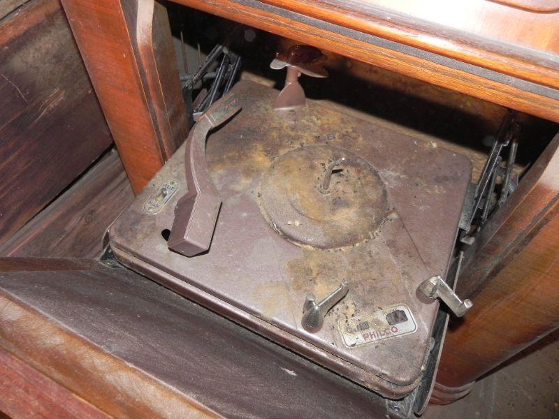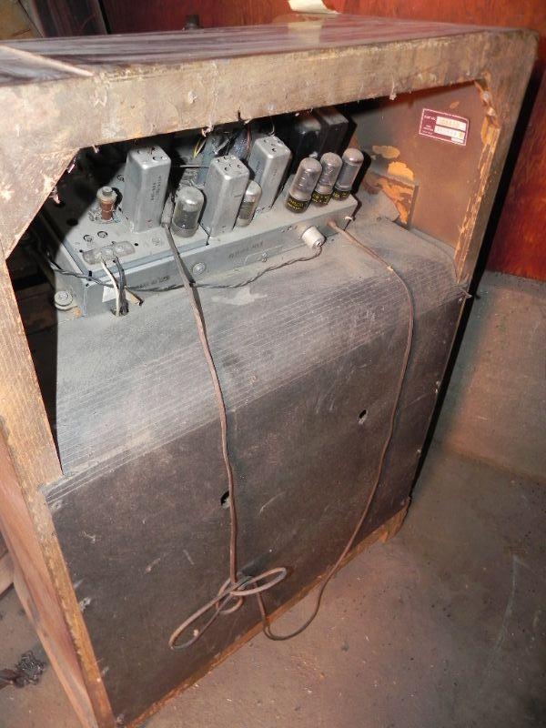 MODEL 46-0219 CABINET IS IN GOOD SHAPE, LOOKS LIKE TUBES AND PARTS ARE THERE BUT UNTESTED RECORD PLAYER FOLDS OUT FROM FRONT RESTORATION PROJECT