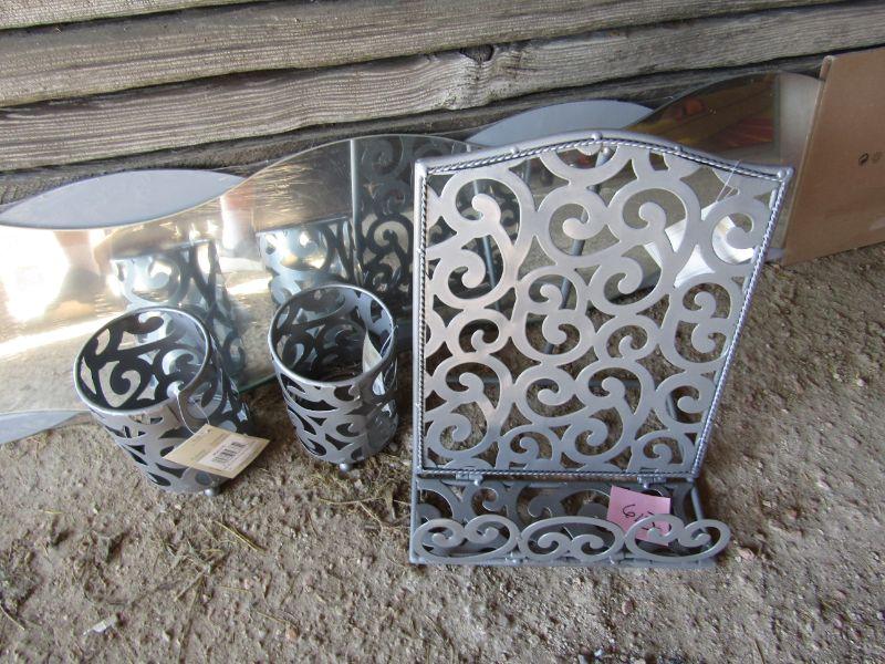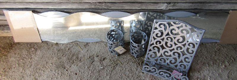 BRAND NEW STILL IN BOX/PLASTIC WRAP. KRABB 701.793.77 FULL LENGTH CURVED MIRRORS. WIDTH REQUIREMENT FOR VERTICAL MOUNTING IS 9 & 7/8 INCHES DUE TO THE CURVE OF THE MIRROR. HEIGHT IS 63 INCHES. WEIGHS 14 LBS. MADE OF GLASS. BRAND NEW STILL WITH TAGS. 2 x CIRCULAR VOTIVE CANDLE HOLDERS. 1 X CANDLE RUNNER (FREESTANDING).