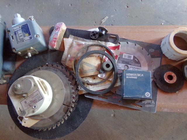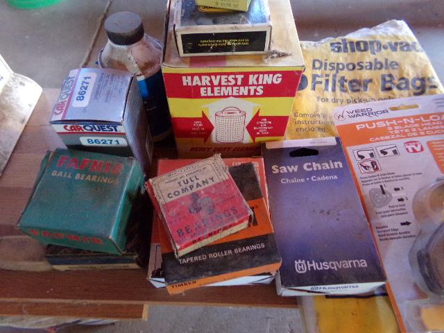 SAW BLADES, FILTERS, BEARINGS, TOW HOOKS AND MISC ITEMS.