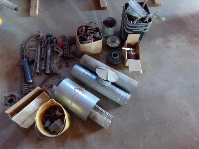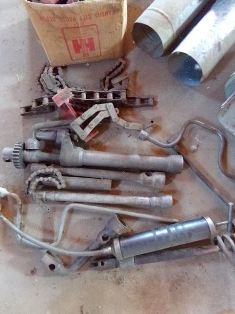 GREASE GUN, CHAIN, HARDWARE AND DUCT PIPE.