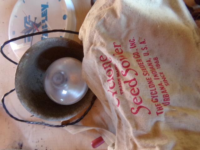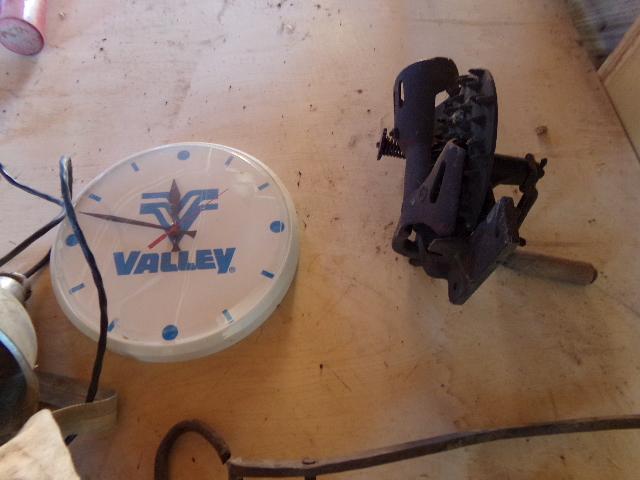 WS-19  VINTAGE CORN HUSKER, HORSE COLLAR, CLOCK AND HEAT LAMP