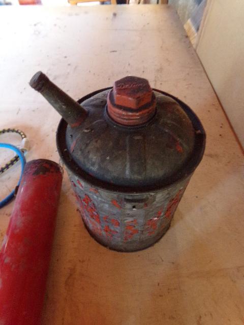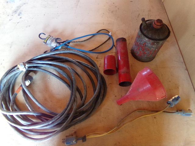EXTENSION CORD, VINTAGE KEROSENE CAN, AND FUNNEL.