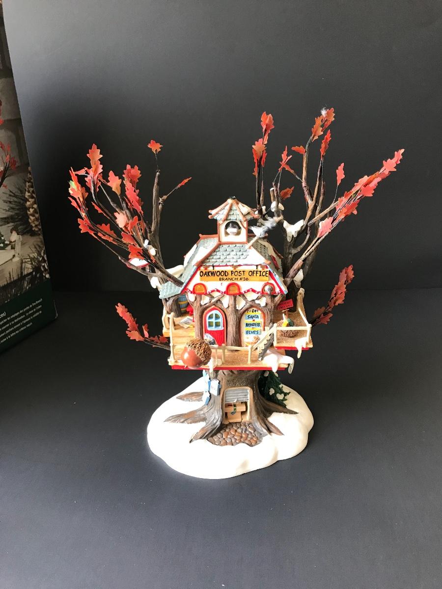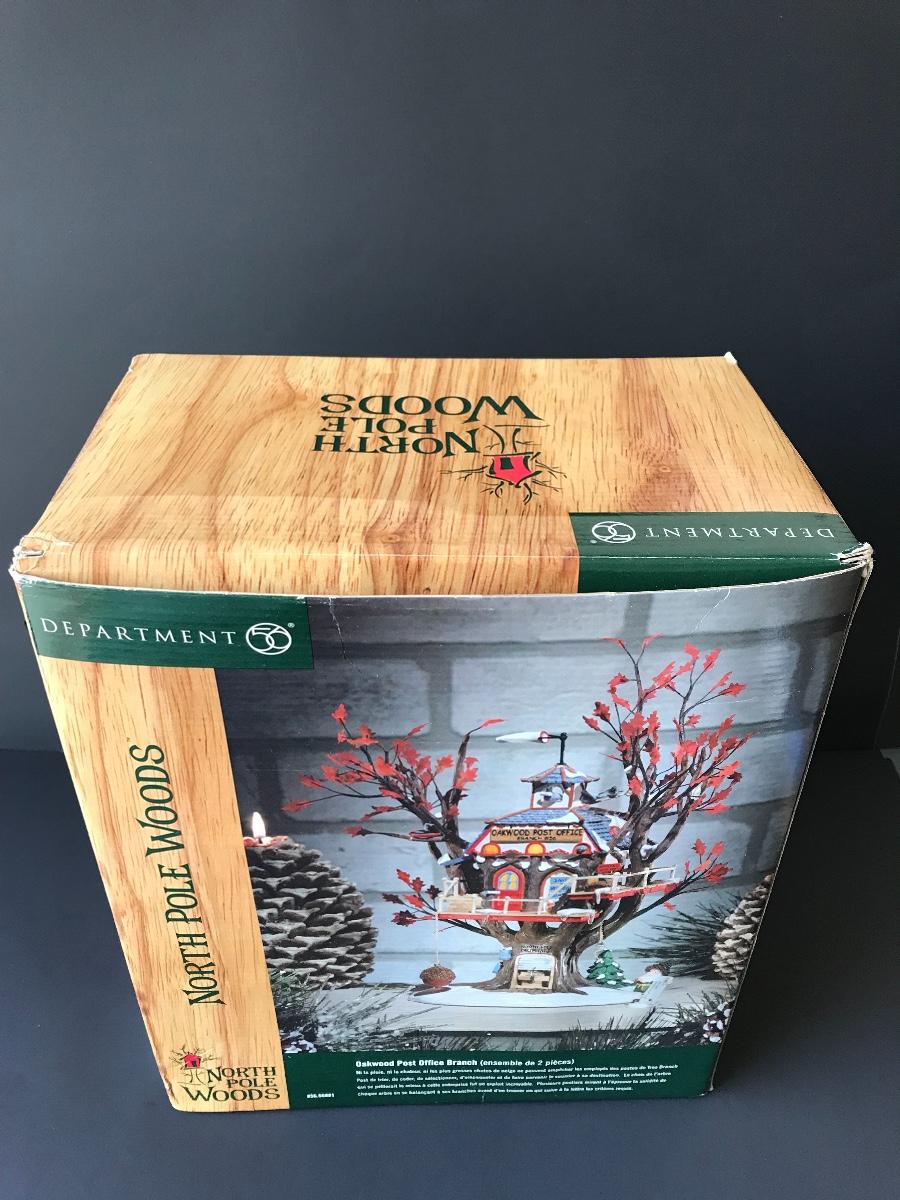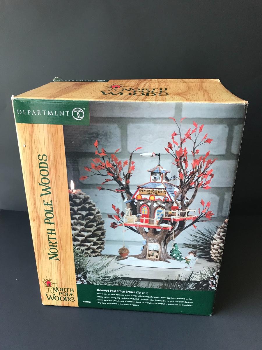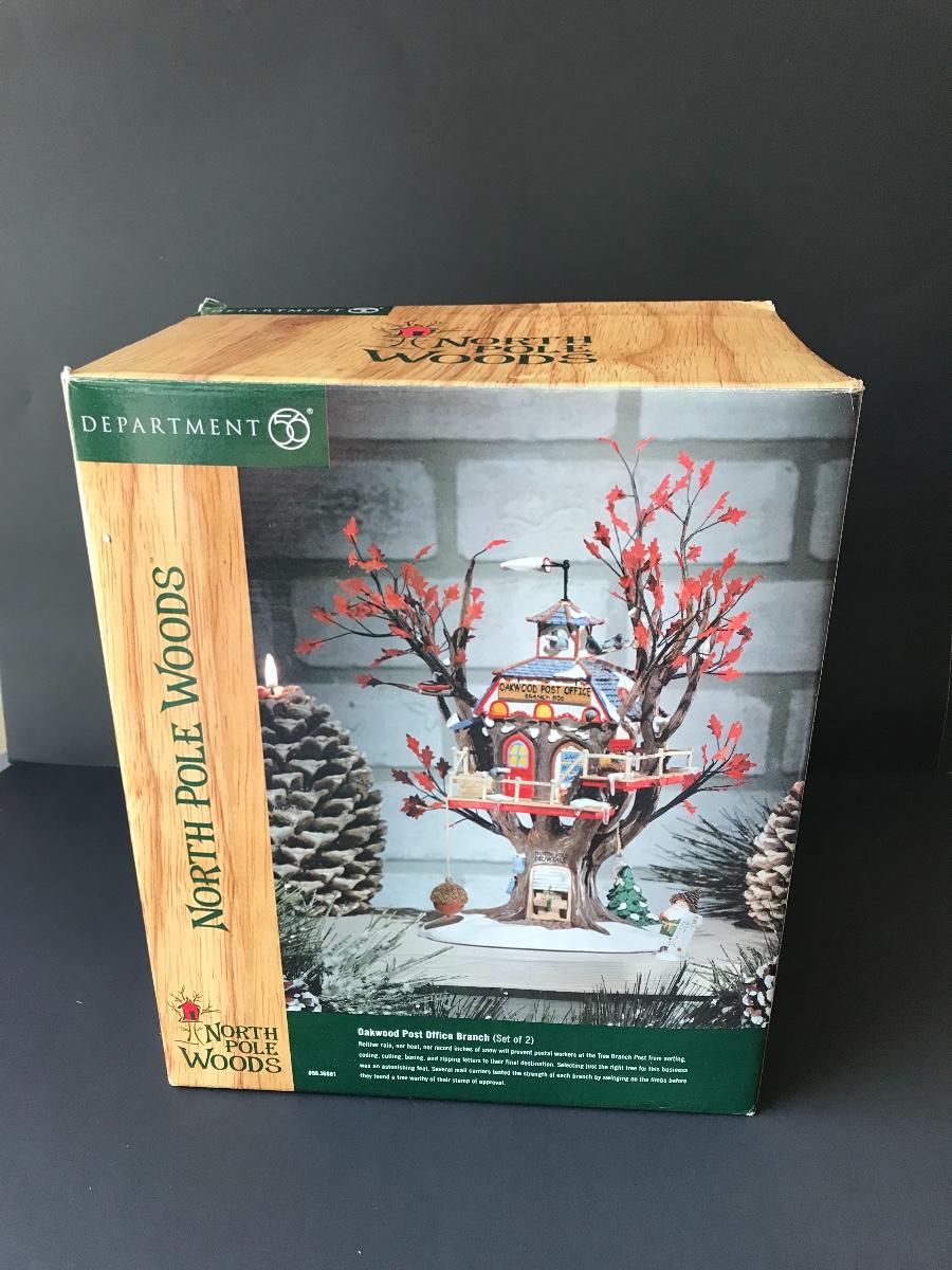 Oakwood Post Office Branch - Department 56 - North Pole Woods. Figure included is not the one pictured that originally came with display. Missing power adapter. All Holiday items in this auction are as-seen. The client collected a lot of holiday pieces and some are new in box, some were displayed once and come with original box, and some have been displayed and come with no box. They are all pre-owned in some fashion and have been stored in an attic or on shelf in library. Please see all pictures. The pictures show condition, measurements if taken, and what is included in the lot. Due to the large amount that we photograph and the time frame, we are not always able to take measurements. All items unless noted, are pre-owned and have been used. Thank you