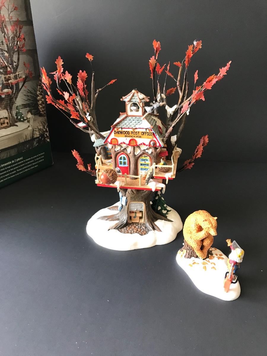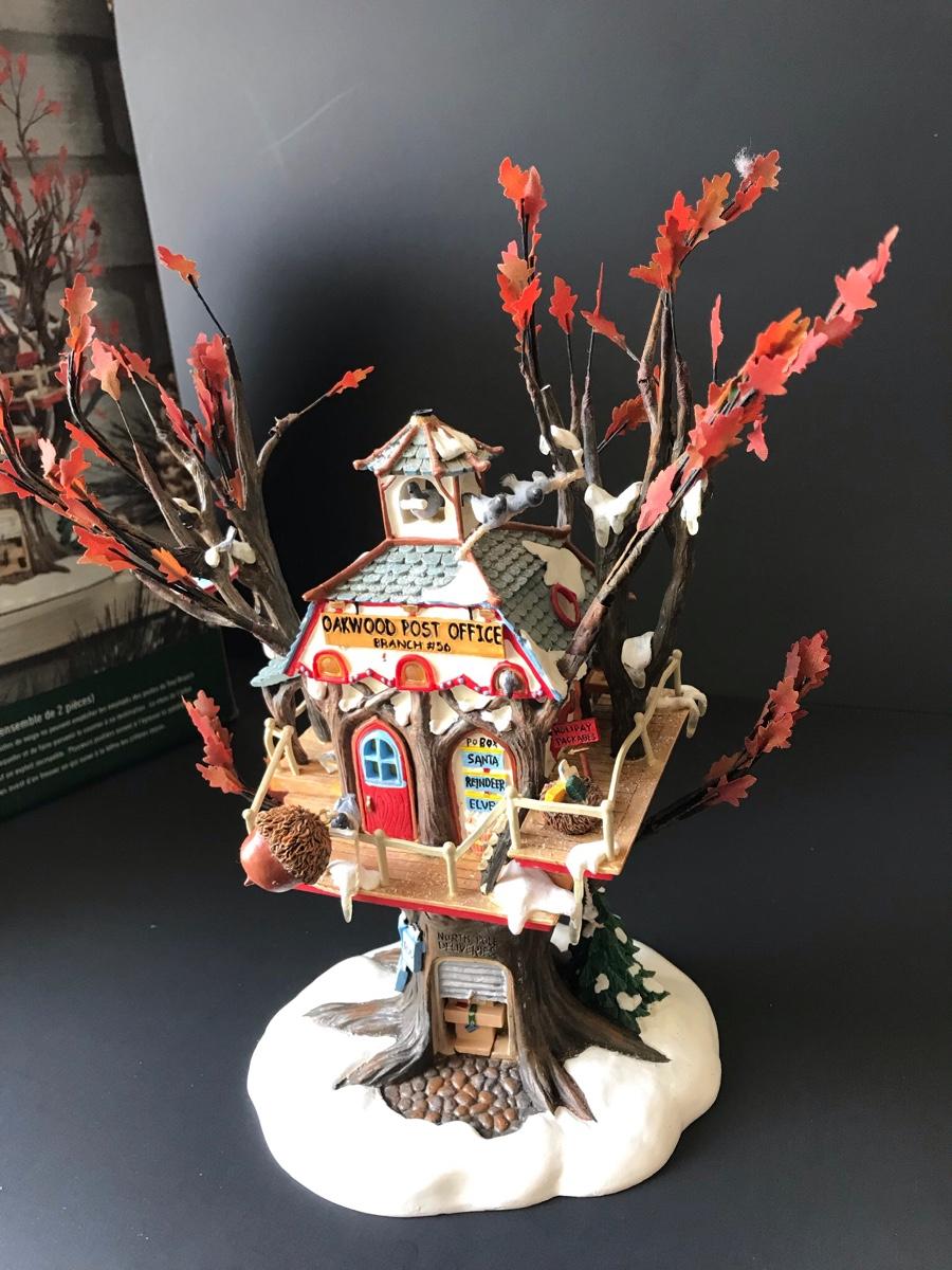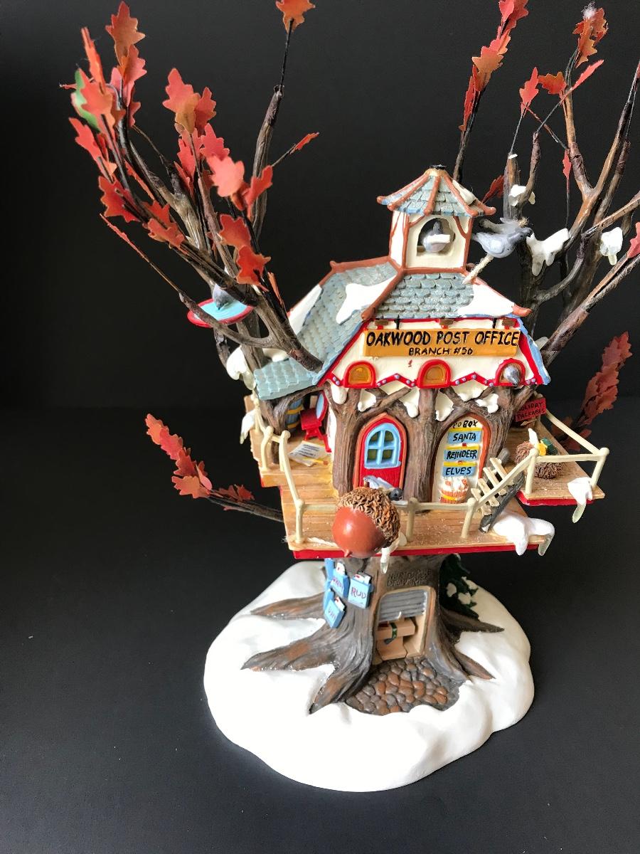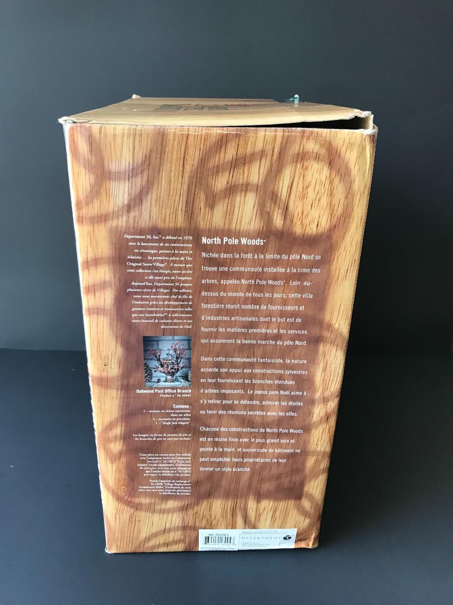 Oakwood Post Office Branch - Department 56 - North Pole Woods. Figure included is not the one pictured that originally came with display. Missing power adapter. All Holiday items in this auction are as-seen. The client collected a lot of holiday pieces and some are new in box, some were displayed once and come with original box, and some have been displayed and come with no box. They are all pre-owned in some fashion and have been stored in an attic or on shelf in library. Please see all pictures. The pictures show condition, measurements if taken, and what is included in the lot. Due to the large amount that we photograph and the time frame, we are not always able to take measurements. All items unless noted, are pre-owned and have been used. Thank you