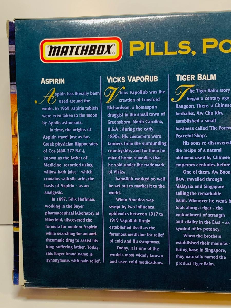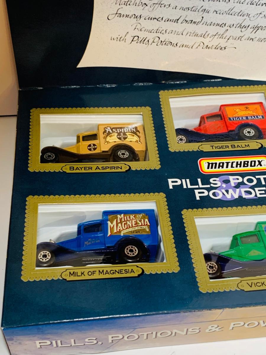 Lot 474: Pills Potions & Powders Matchbox Collection & Road Champs Trucks