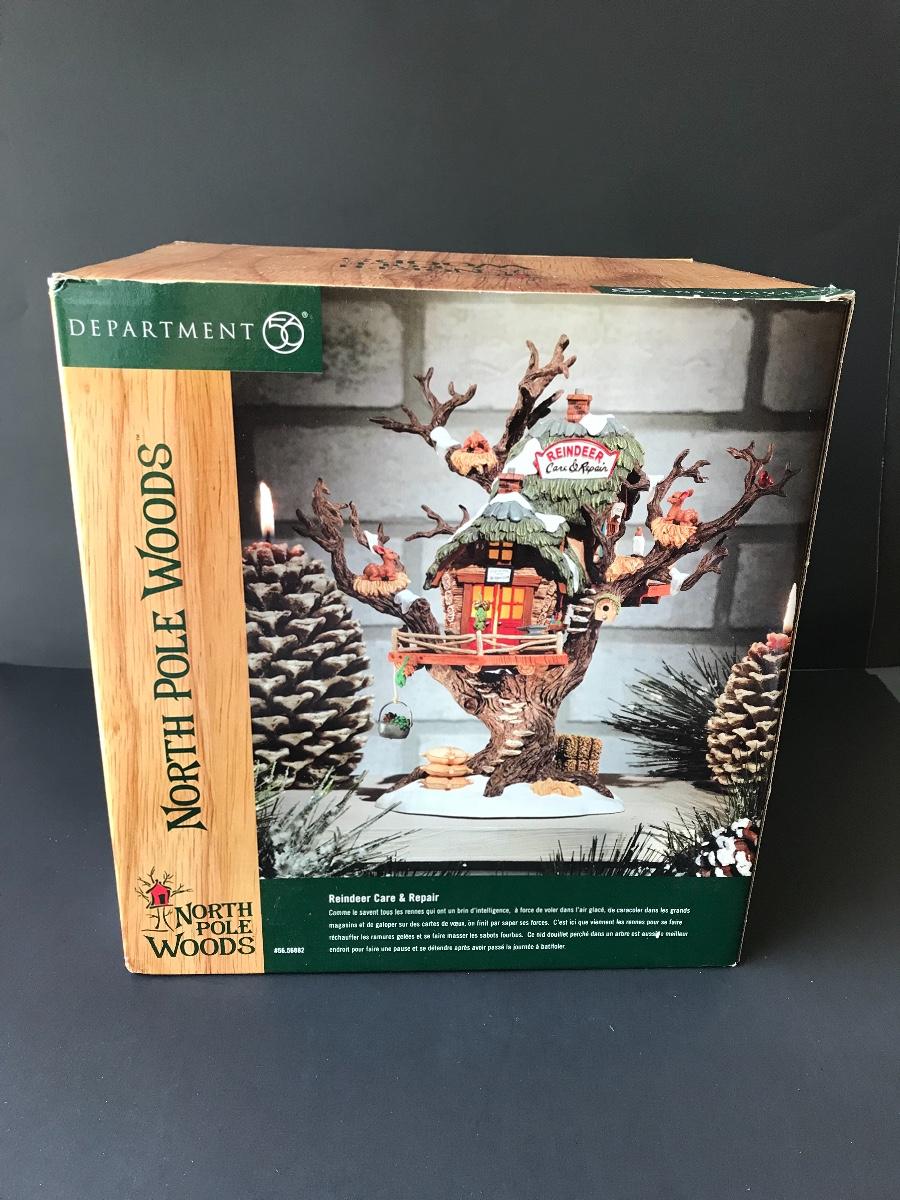 Reindeer Care & Repair - Department 56 - North Pole Woods. Missing Power Adapter. All Holiday items in this auction are as-seen. The client collected a lot of holiday pieces and some are new in box, some were displayed once and come with original box, and some have been displayed and come with no box. They are all pre-owned in some fashion and have been stored in an attic or on shelf in library. Please see all pictures. The pictures show condition, measurements if taken, and what is included in the lot. Due to the large amount that we photograph and the time frame, we are not always able to take measurements. All items unless noted, are pre-owned and have been used. Thank you