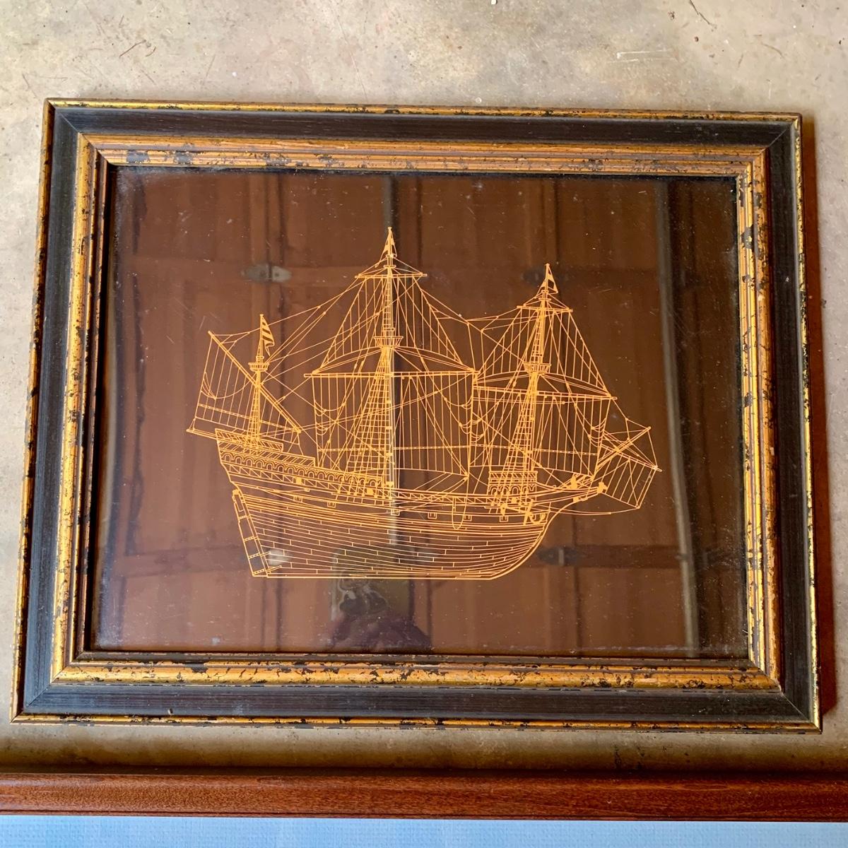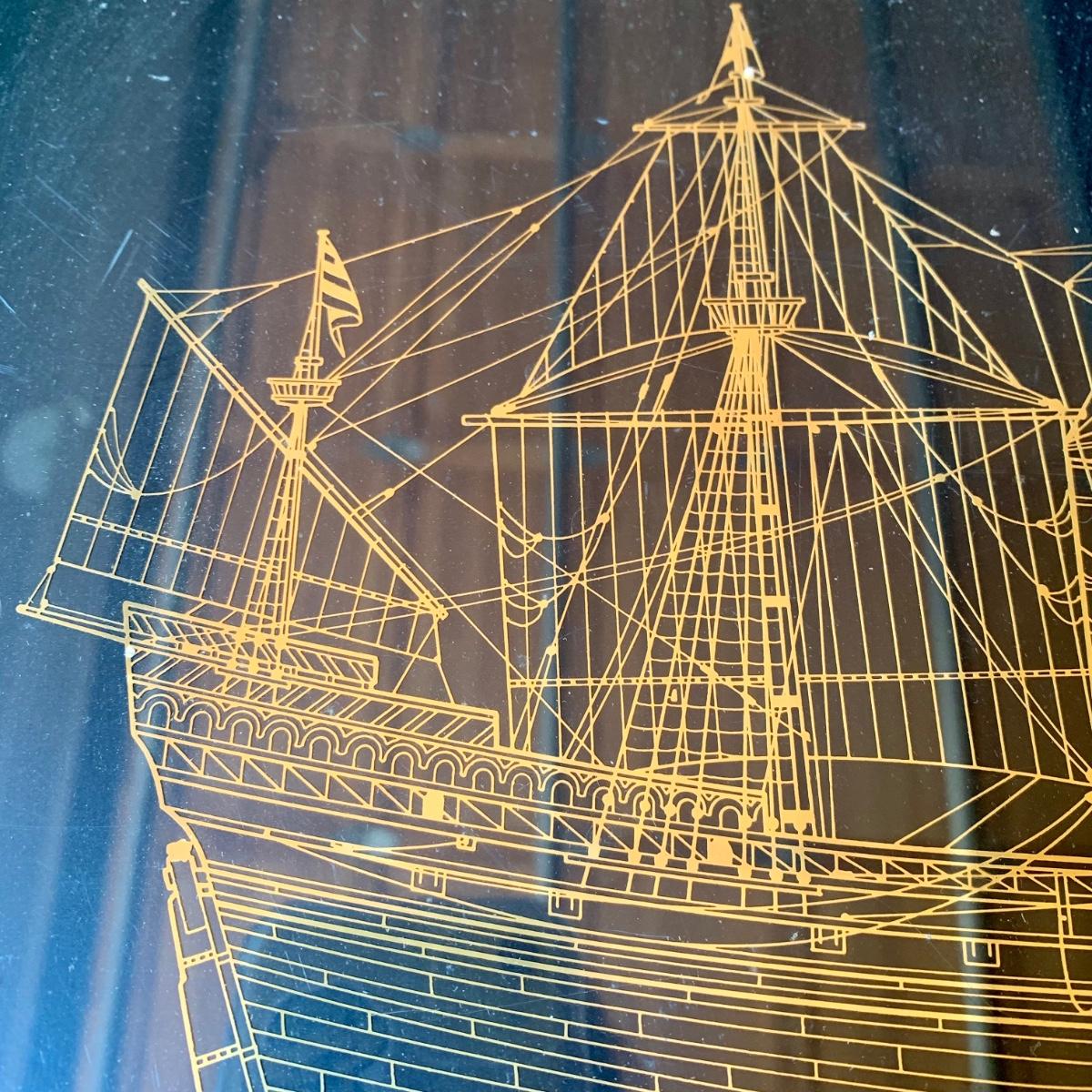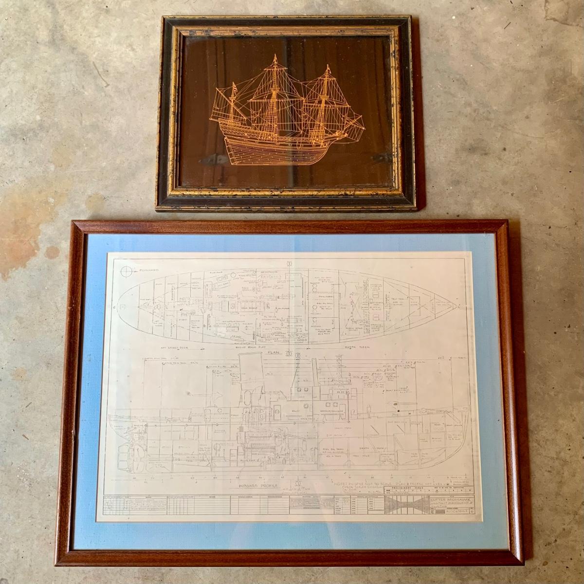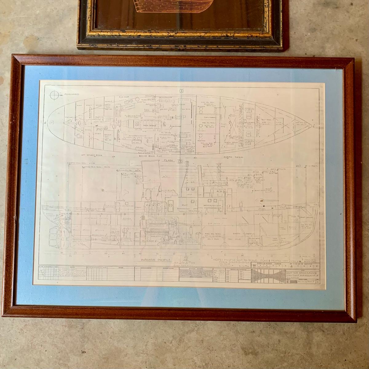 LOT 475 G: Framed & Numbered "The Golden Hind" from Royal Geographical Society & Framed Cutter Mohawk Ship Blueprints