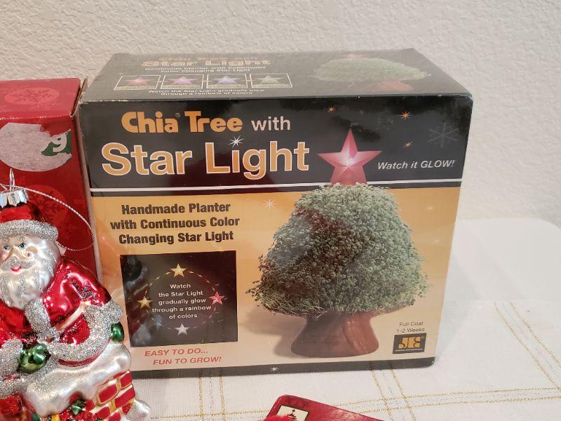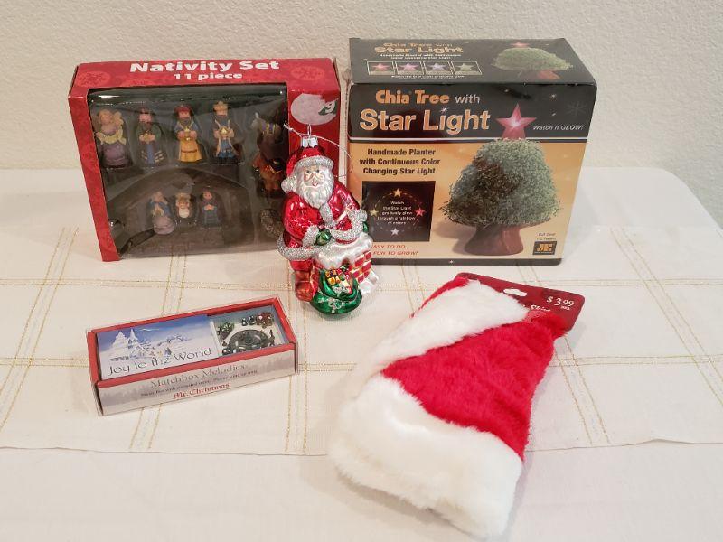 Lot 477: NEW Chia Christmas Tree, Mini Tree Skirt, Nativity, Music Box & Ornament