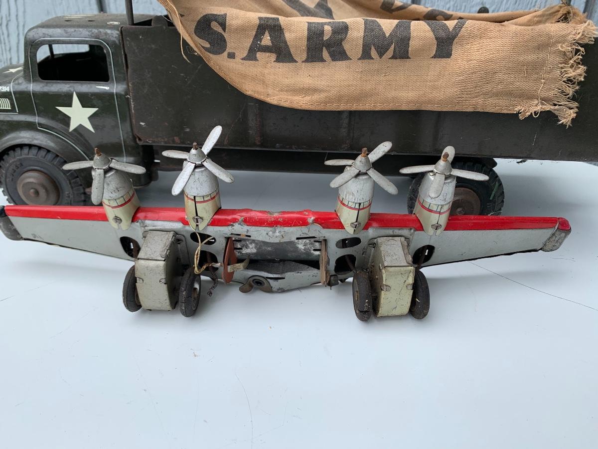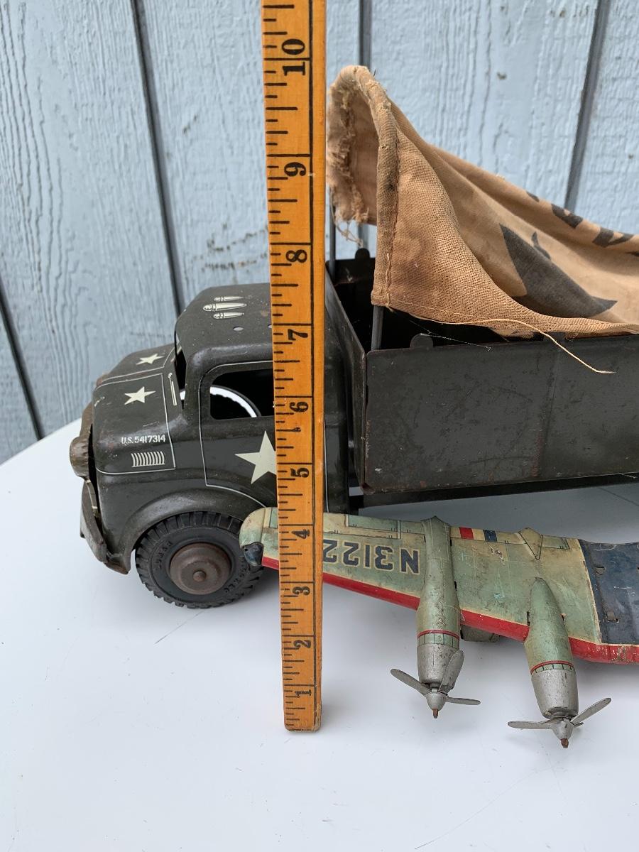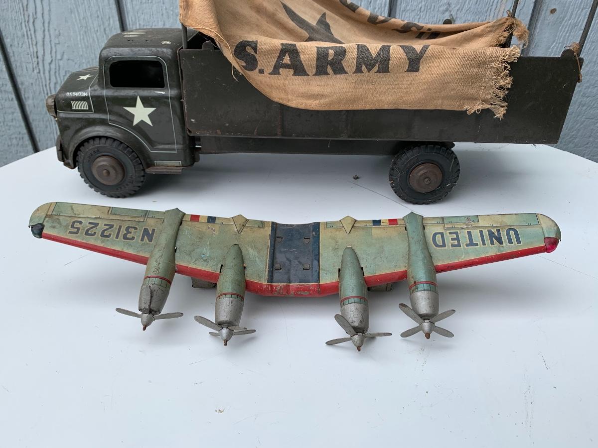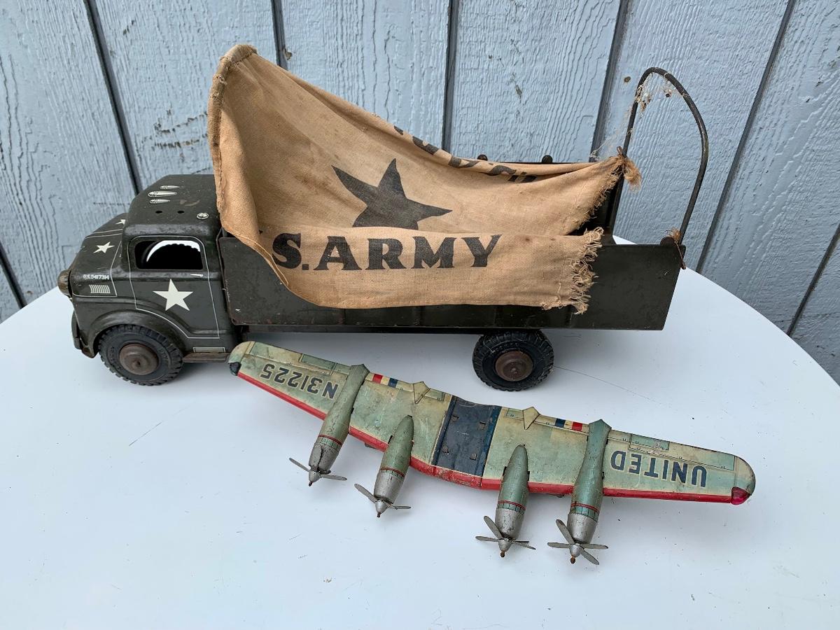 Well played with tin US Army truck and tin plane wings. Please see all pictures as they are the best representation of the items. The pictures show condition, measurements if taken, and what is included in the lot. Due to the large amount that we photograph and the time frame, we are not always able to take measurements. All items unless noted, are pre-owned and have been used. If you purchased furniture, you must bring help. We do not allow one person to carry large furniture out on their own. Bring help, tools and a truck for the safety of our client’s homes, and your personal safety. Company policy. Thank you.