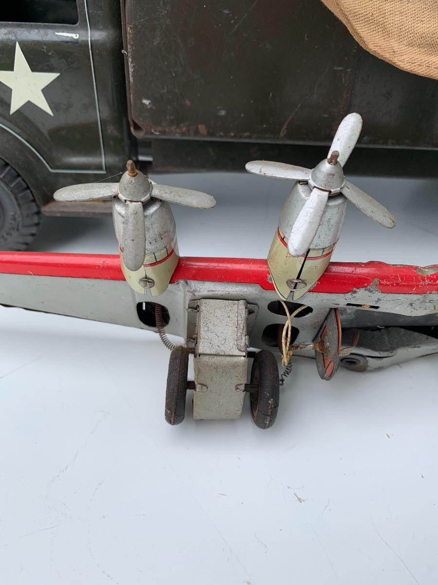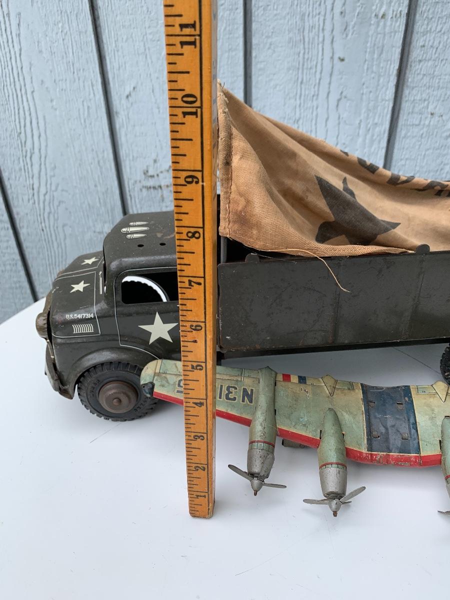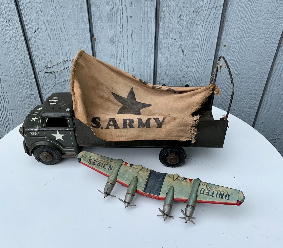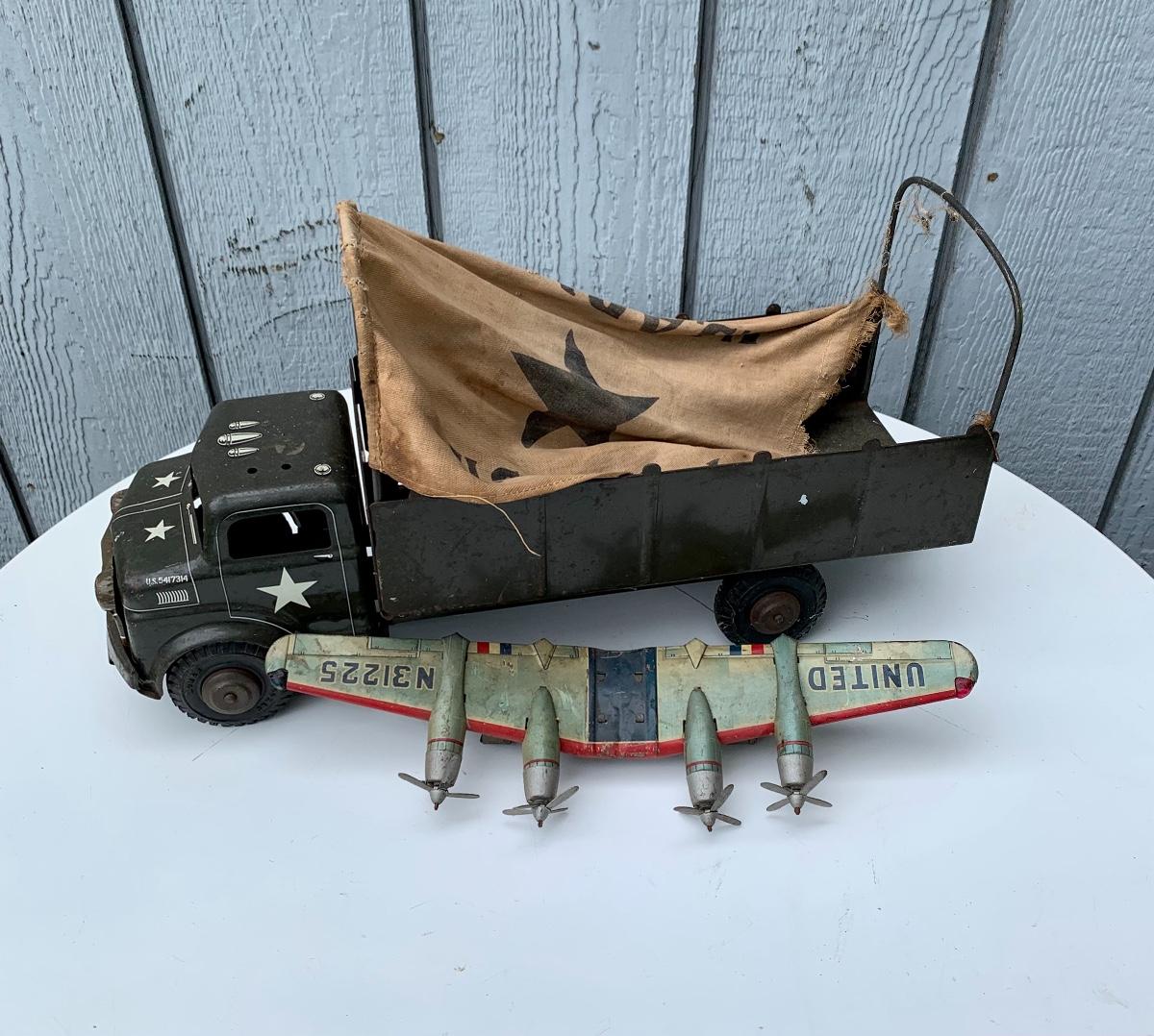 Well played with tin US Army truck and tin plane wings. Please see all pictures as they are the best representation of the items. The pictures show condition, measurements if taken, and what is included in the lot. Due to the large amount that we photograph and the time frame, we are not always able to take measurements. All items unless noted, are pre-owned and have been used. If you purchased furniture, you must bring help. We do not allow one person to carry large furniture out on their own. Bring help, tools and a truck for the safety of our client’s homes, and your personal safety. Company policy. Thank you.