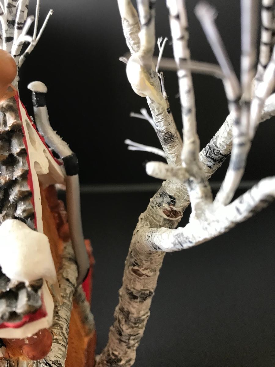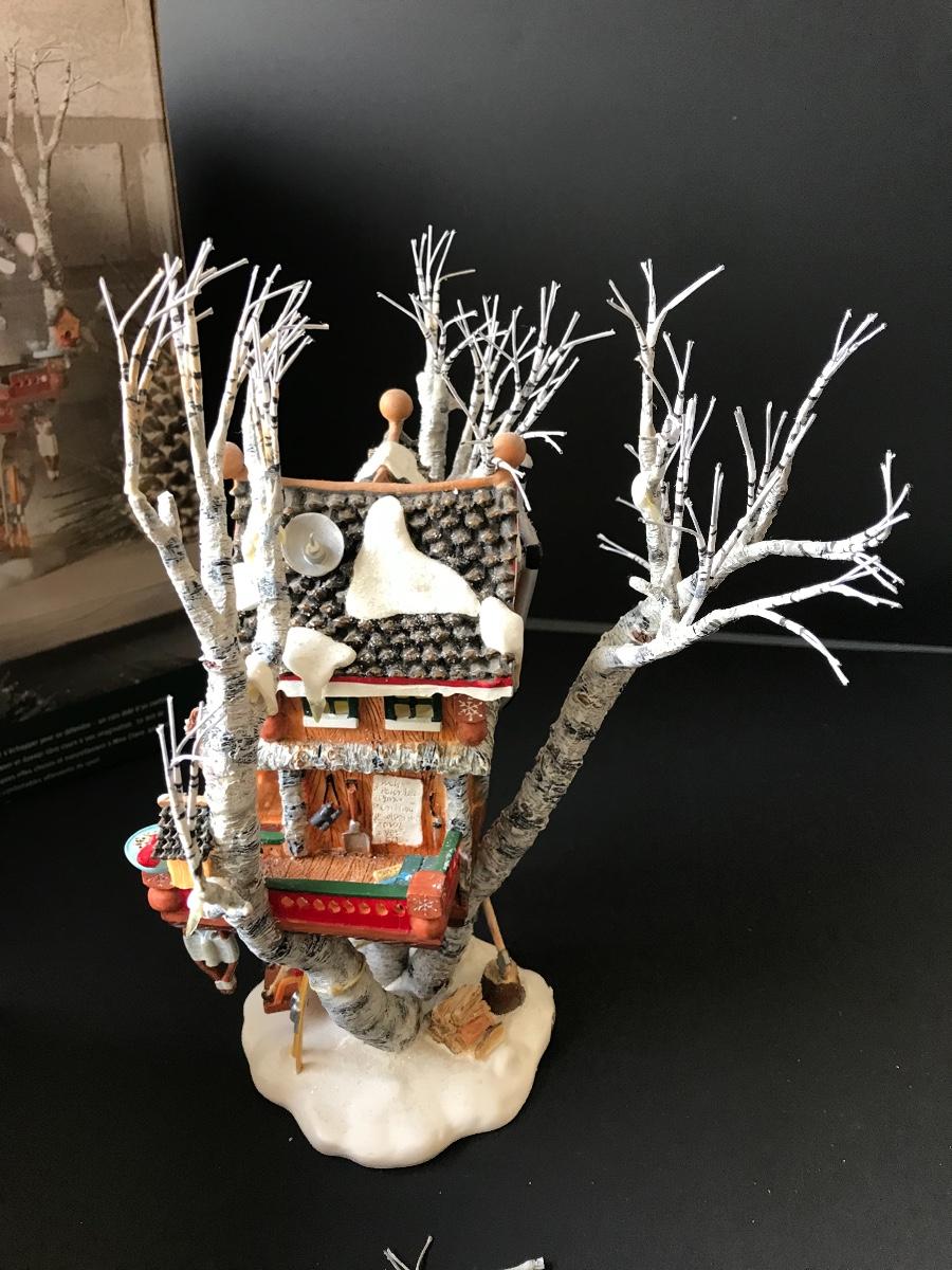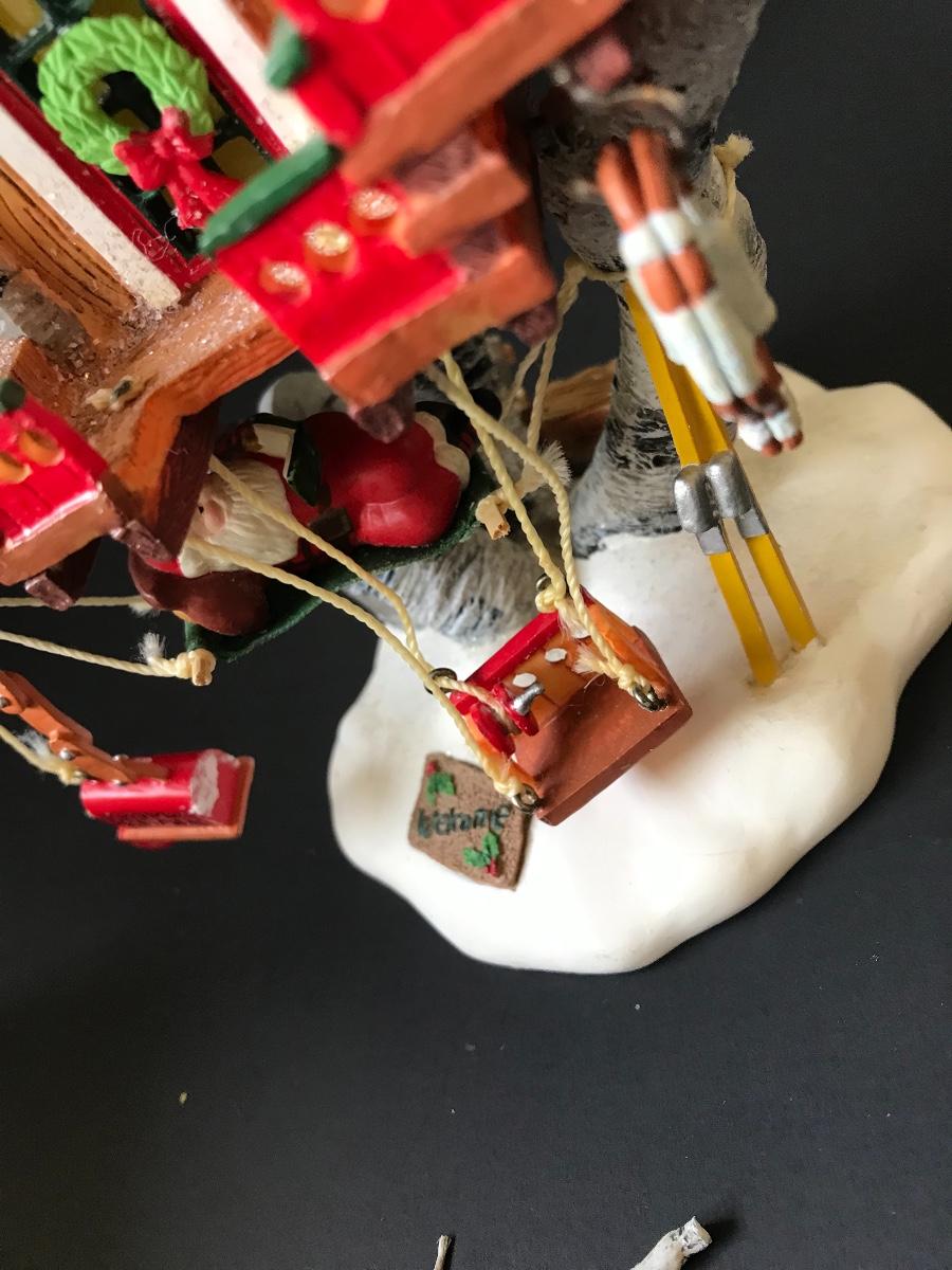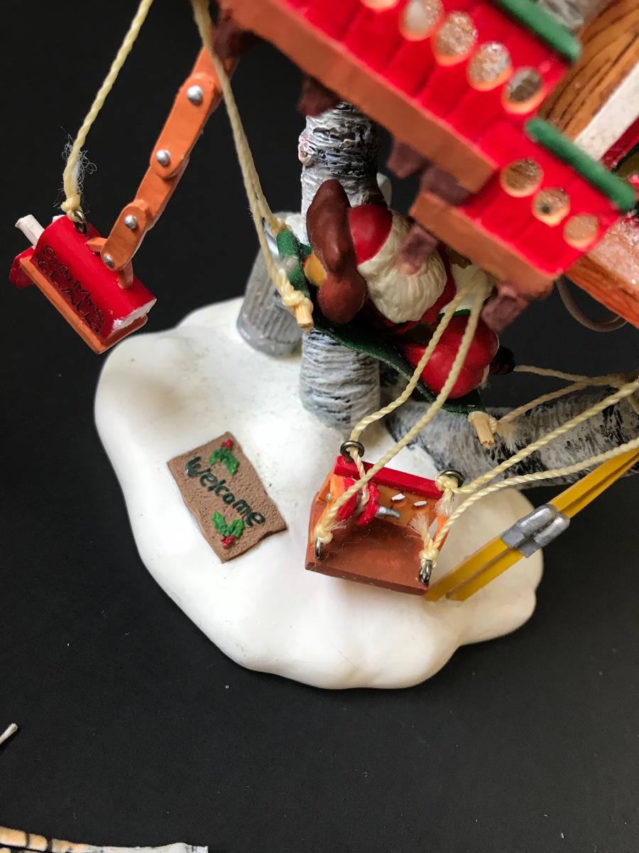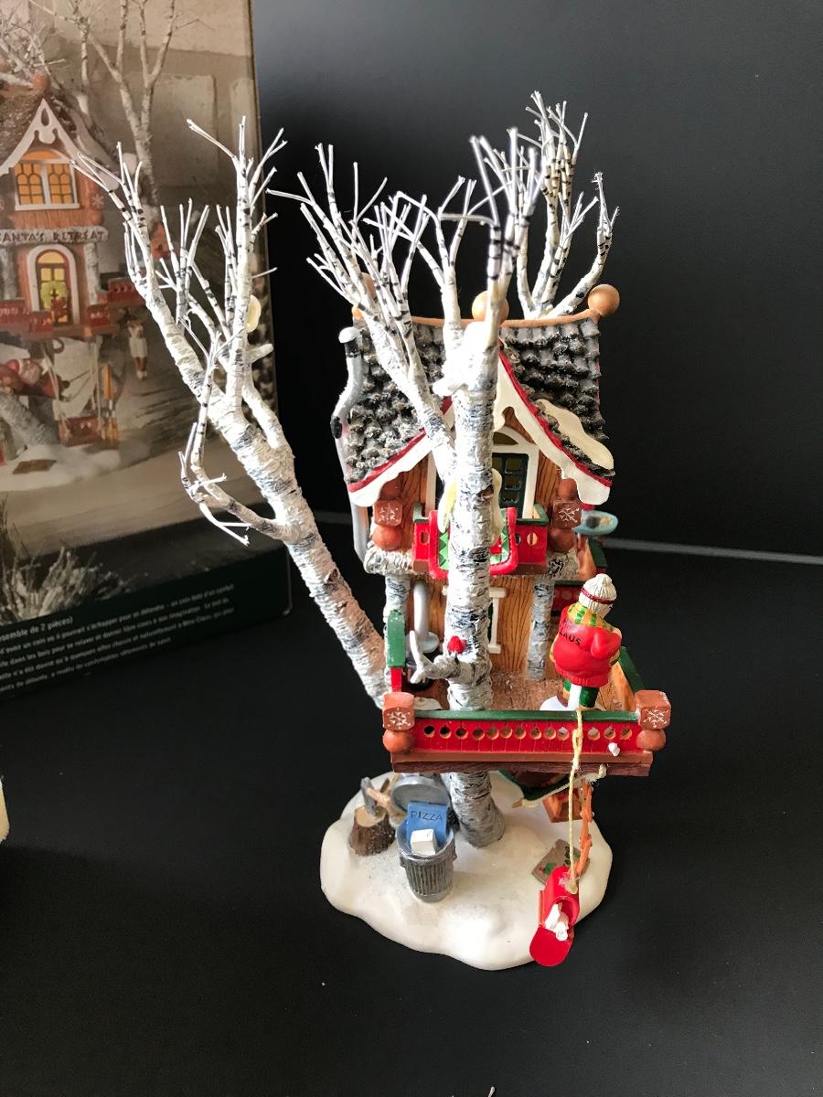 Santa's Retreat - Department 56 - North Pole Woods. Has some broken pieces. Missing power adapter. All Holiday items in this auction are as-seen. The client collected a lot of holiday pieces and some are new in box, some were displayed once and come with original box, and some have been displayed and come with no box. They are all pre-owned in some fashion and have been stored in an attic or on shelf in library. Please see all pictures. The pictures show condition, measurements if taken, and what is included in the lot. Due to the large amount that we photograph and the time frame, we are not always able to take measurements. All items unless noted, are pre-owned and have been used. Thank you