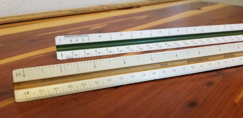 LOT #477: Pair of Vintage Tri-Sided Ruler (One is Keuffel & Esser)