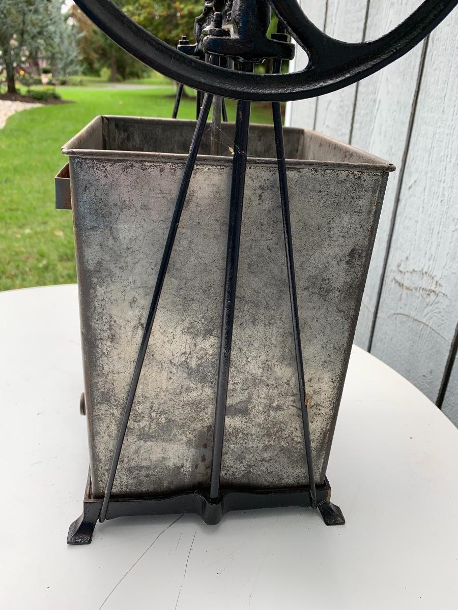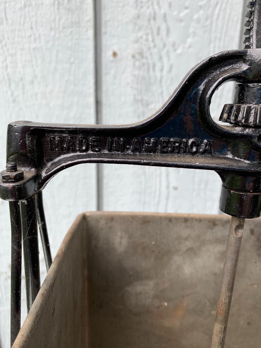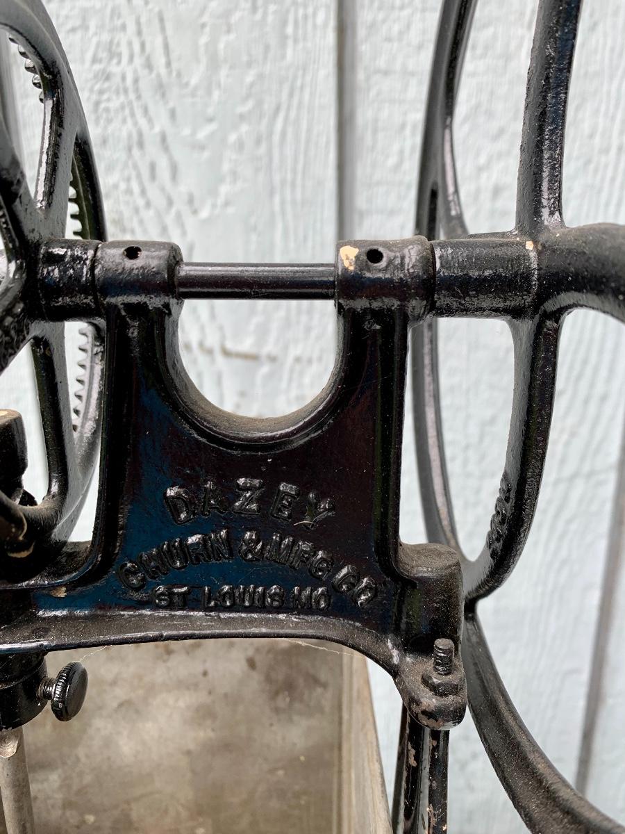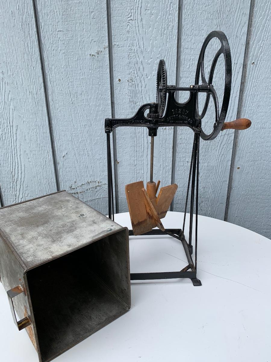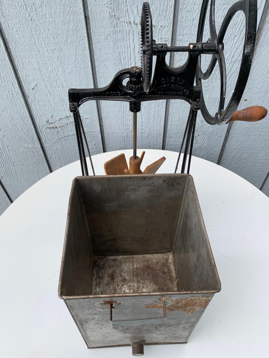 Lot 477: Antique Dazey Cast Iron, Galvanized Metal Tin & Wood Butter Churn