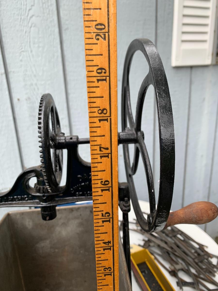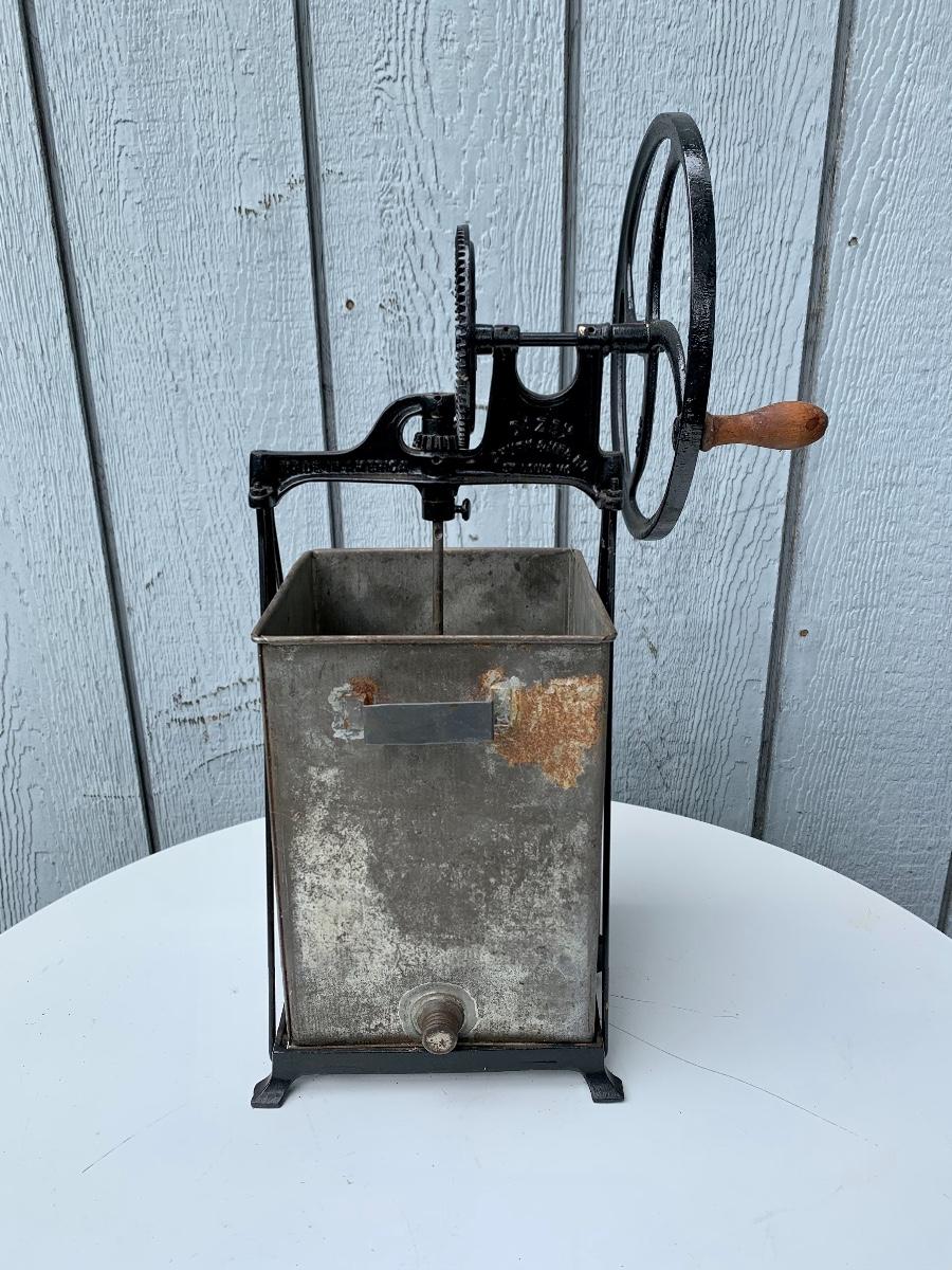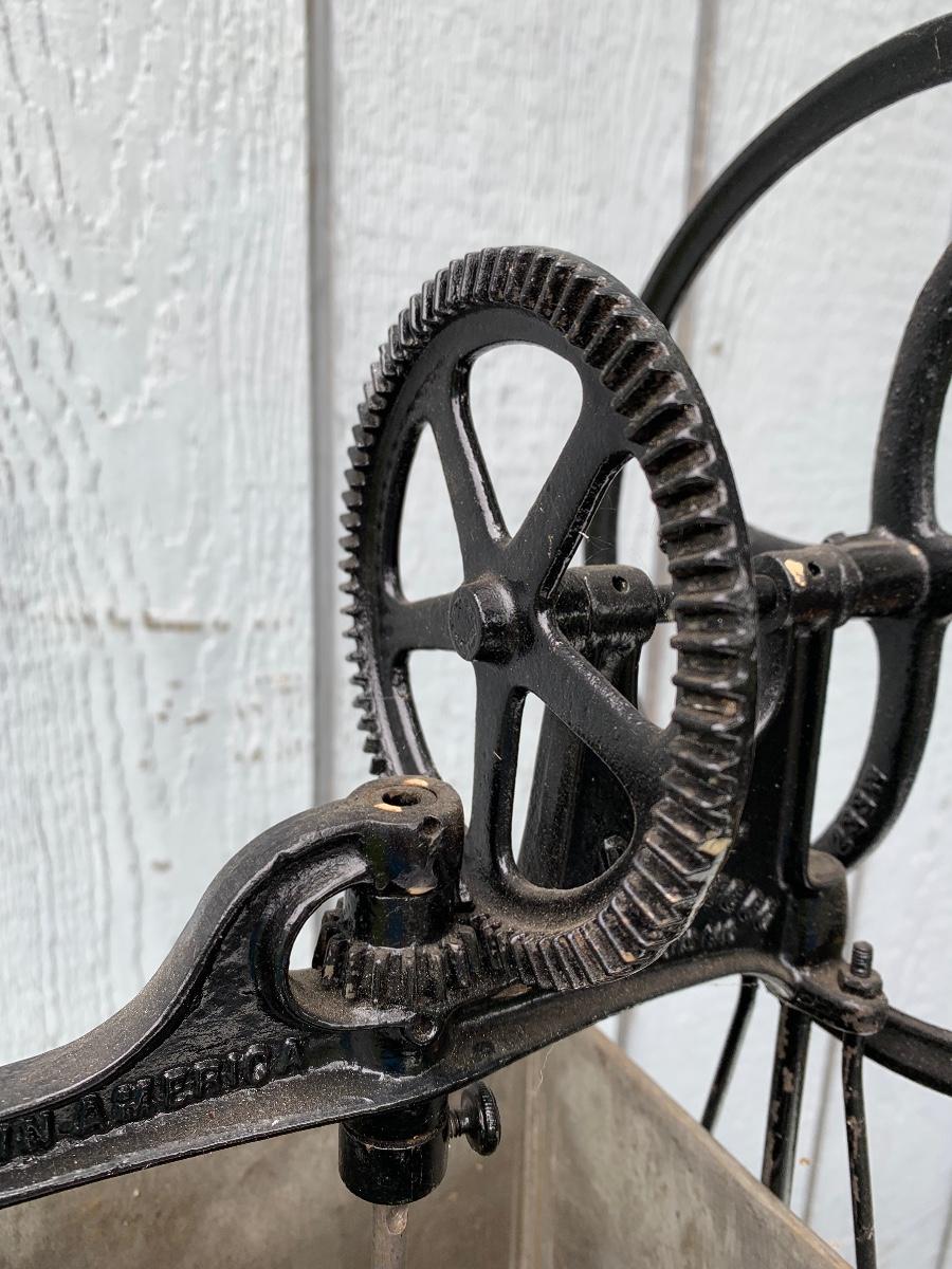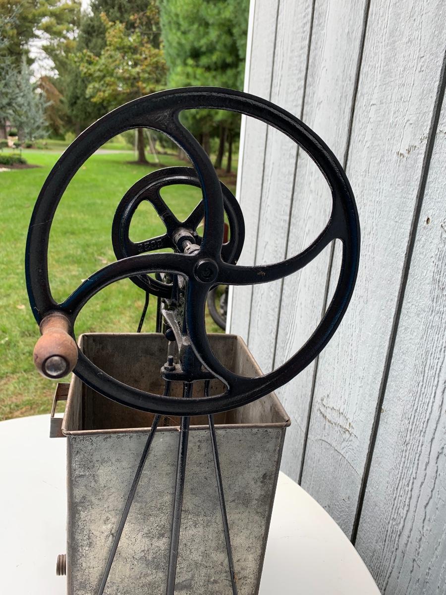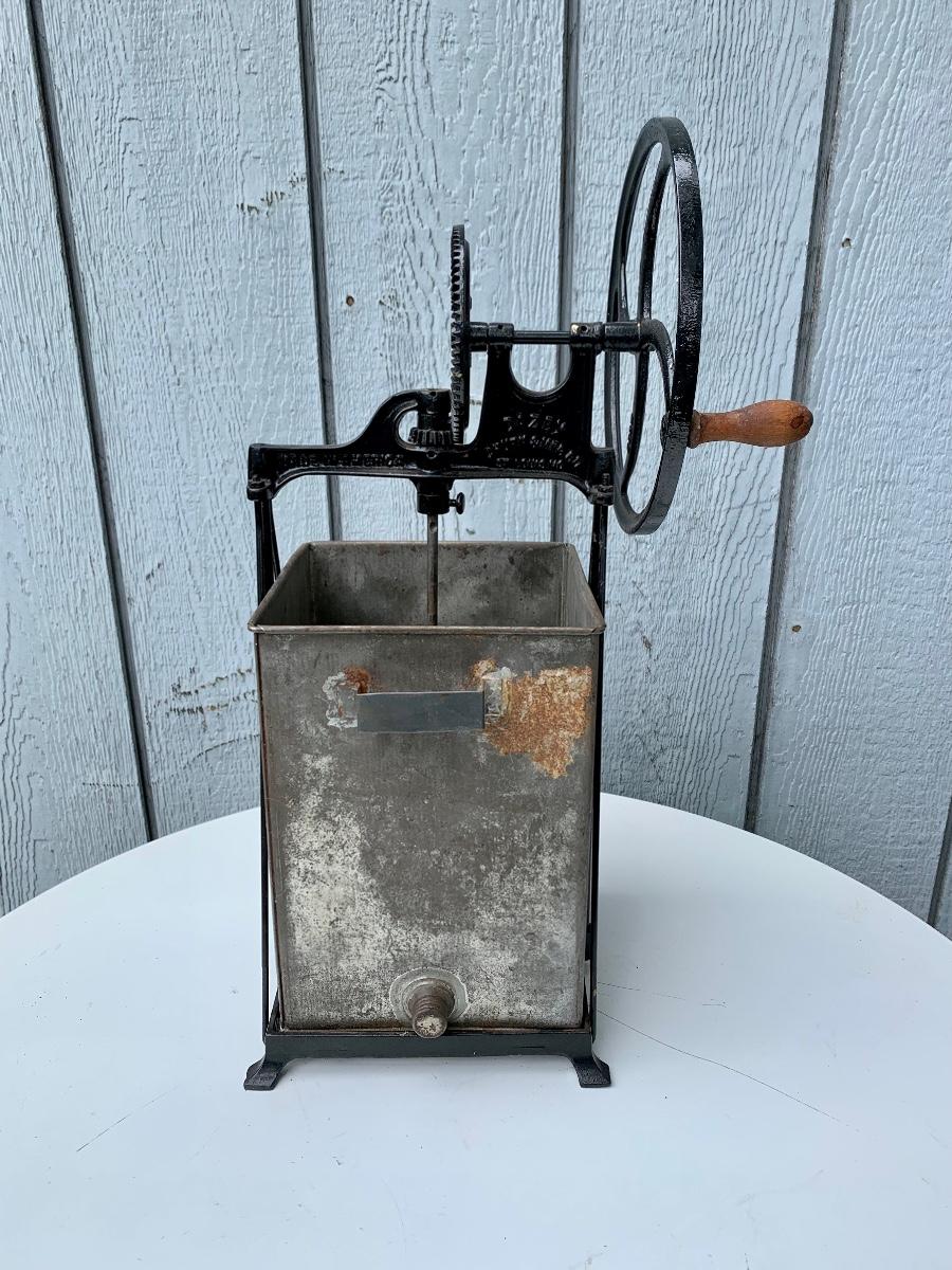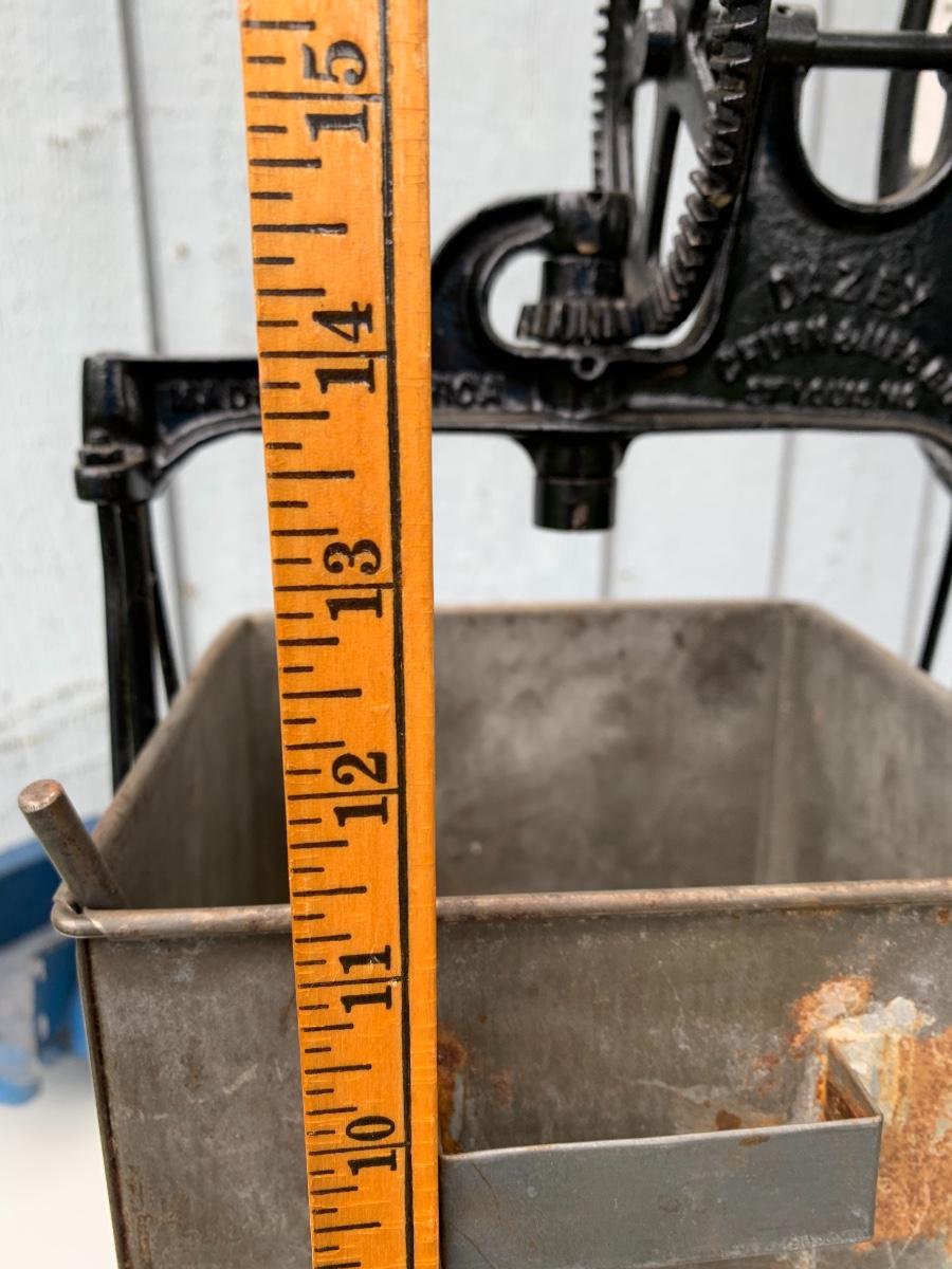 Lot 477: Antique Dazey Cast Iron, Galvanized Metal Tin & Wood Butter Churn