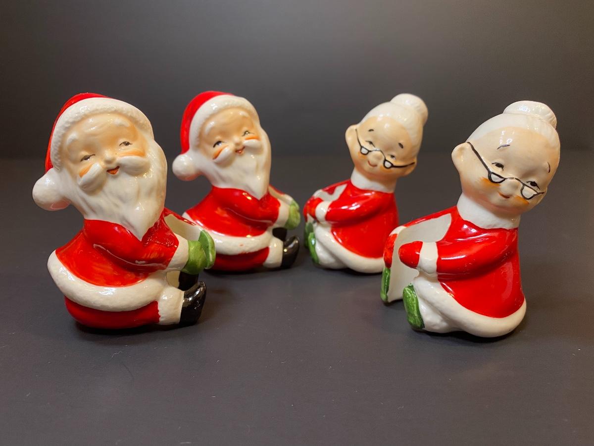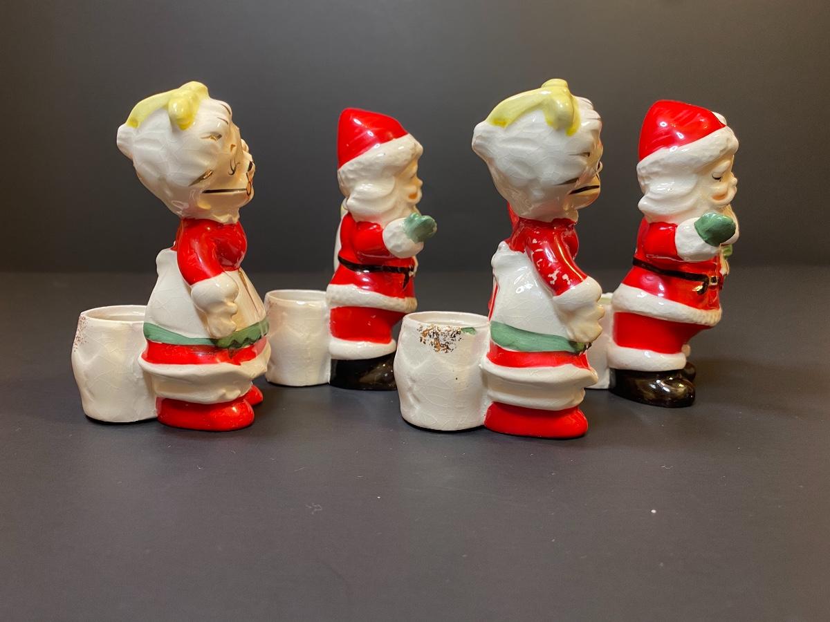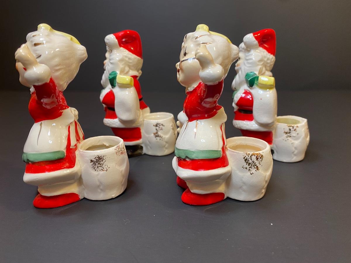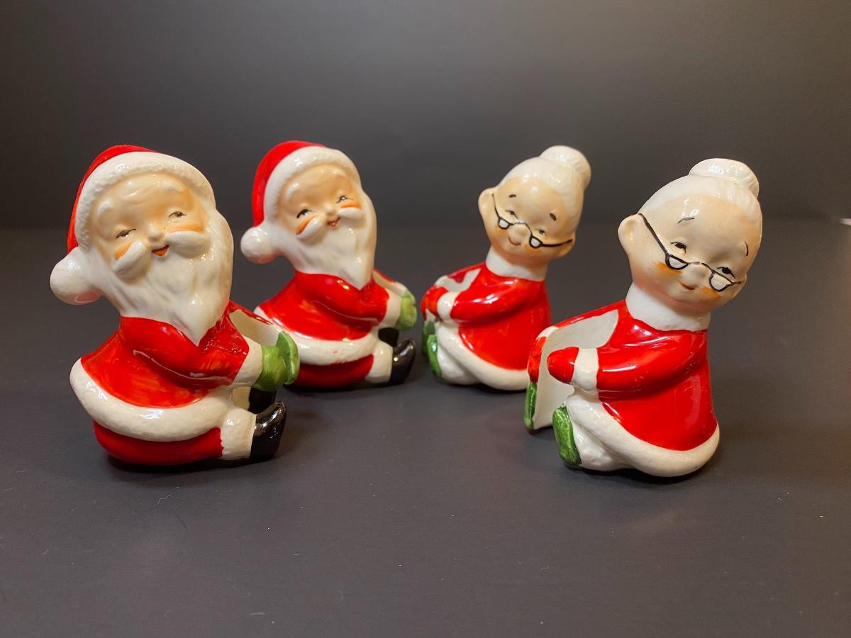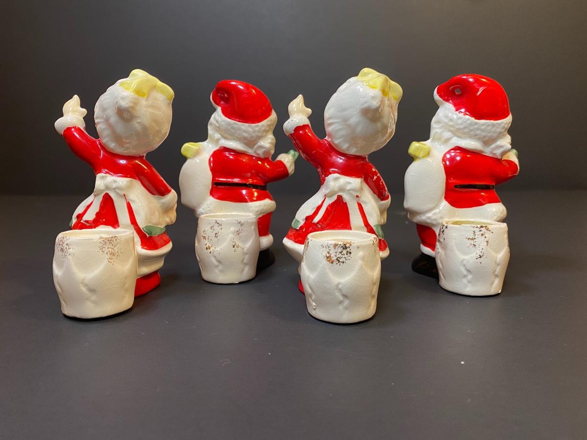Lot 477: Vintage Japan Christmas Table: Salt/Pepper Sets, Candle Huggers & Holders, Napkin Rings
