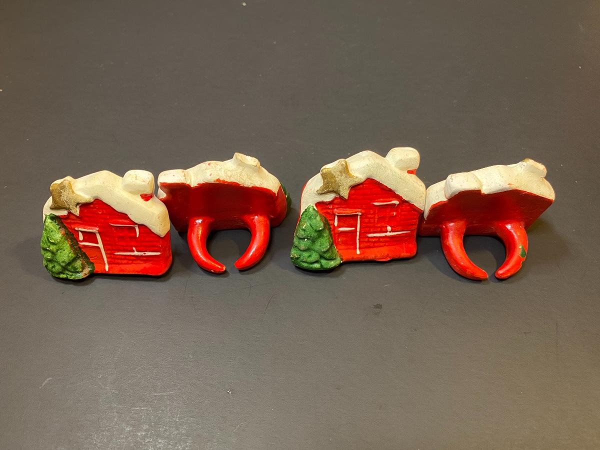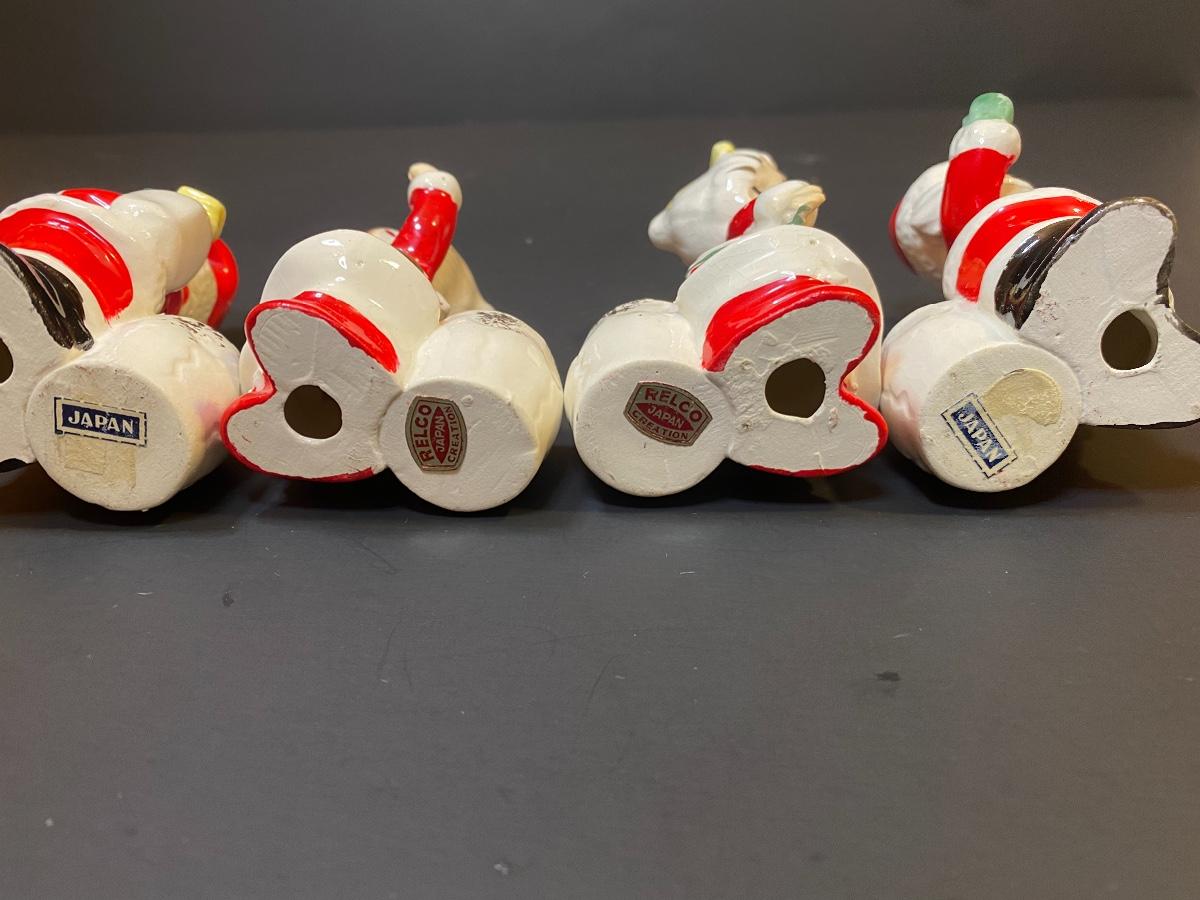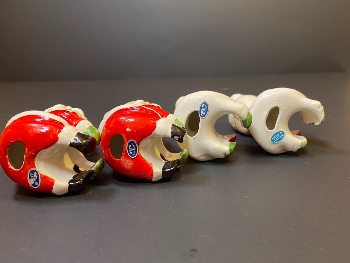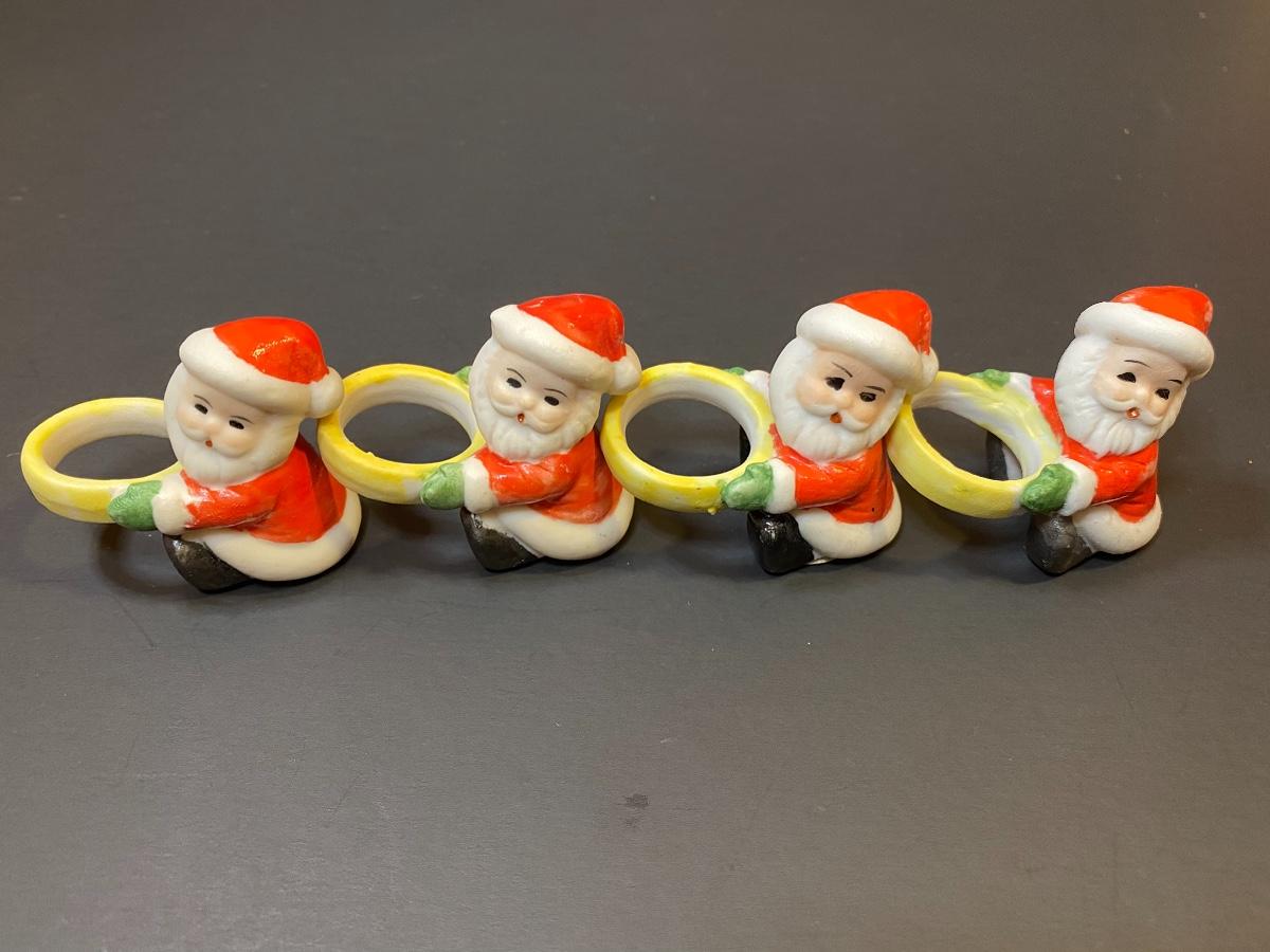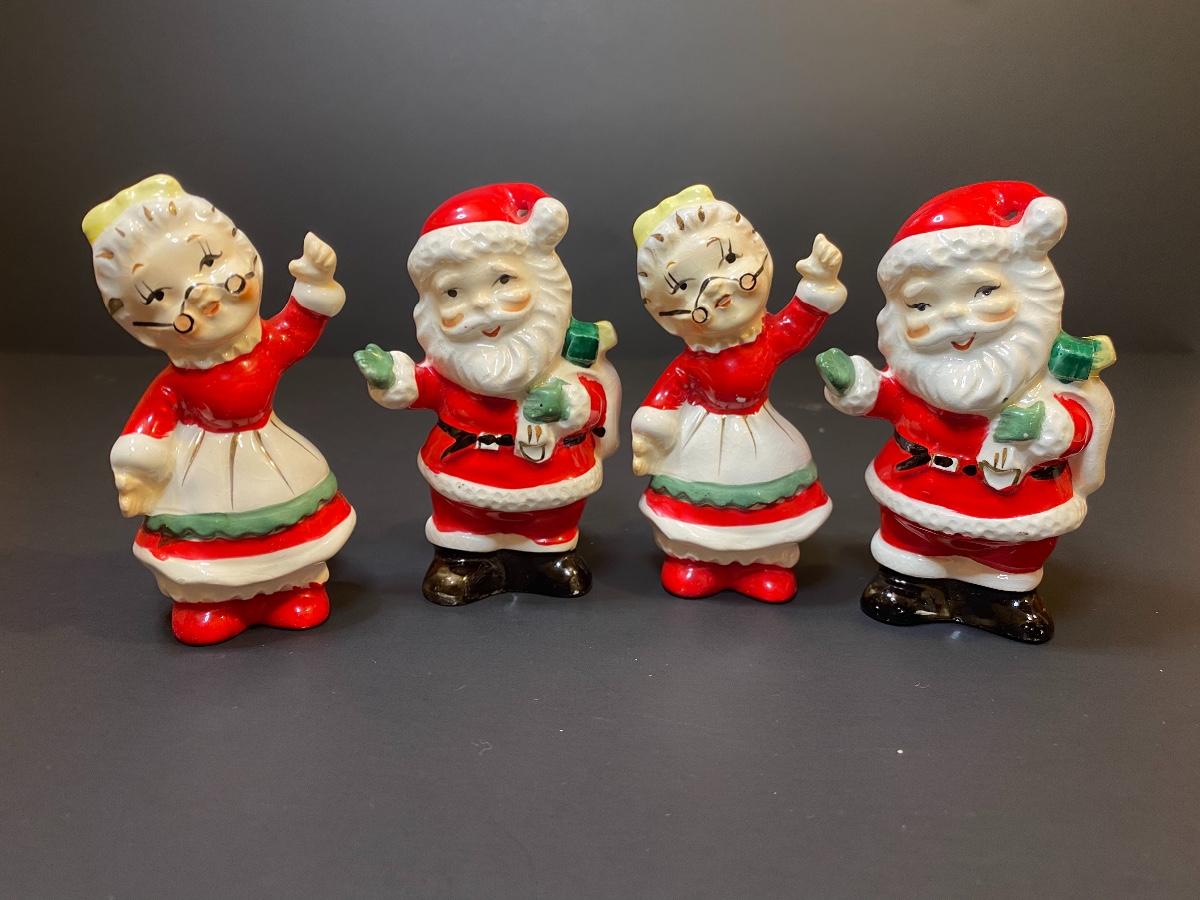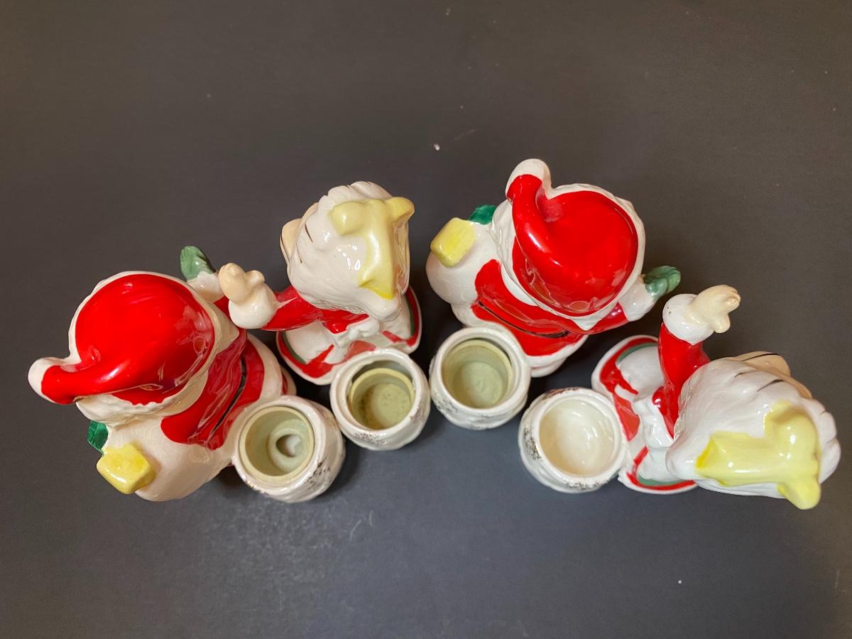 Lot 477: Vintage Japan Christmas Table: Salt/Pepper Sets, Candle Huggers & Holders, Napkin Rings