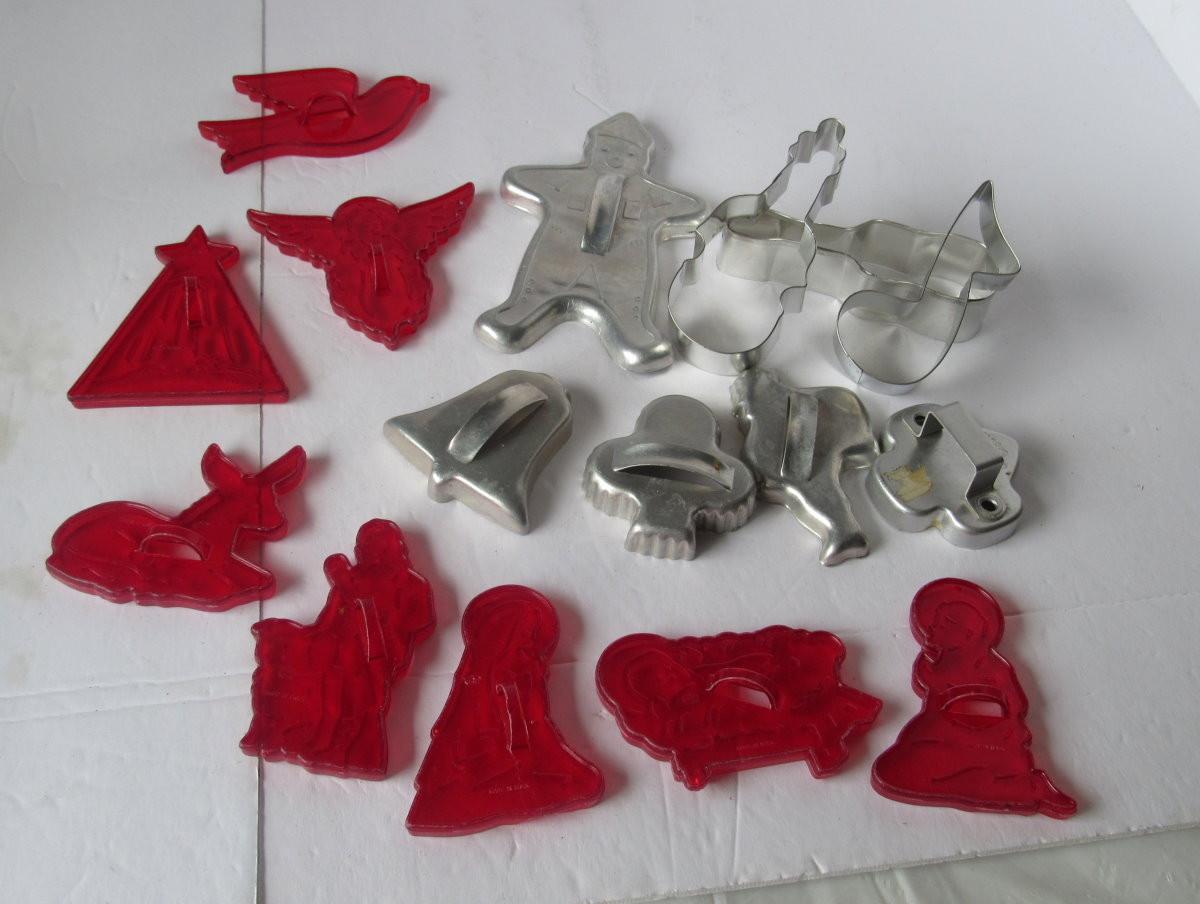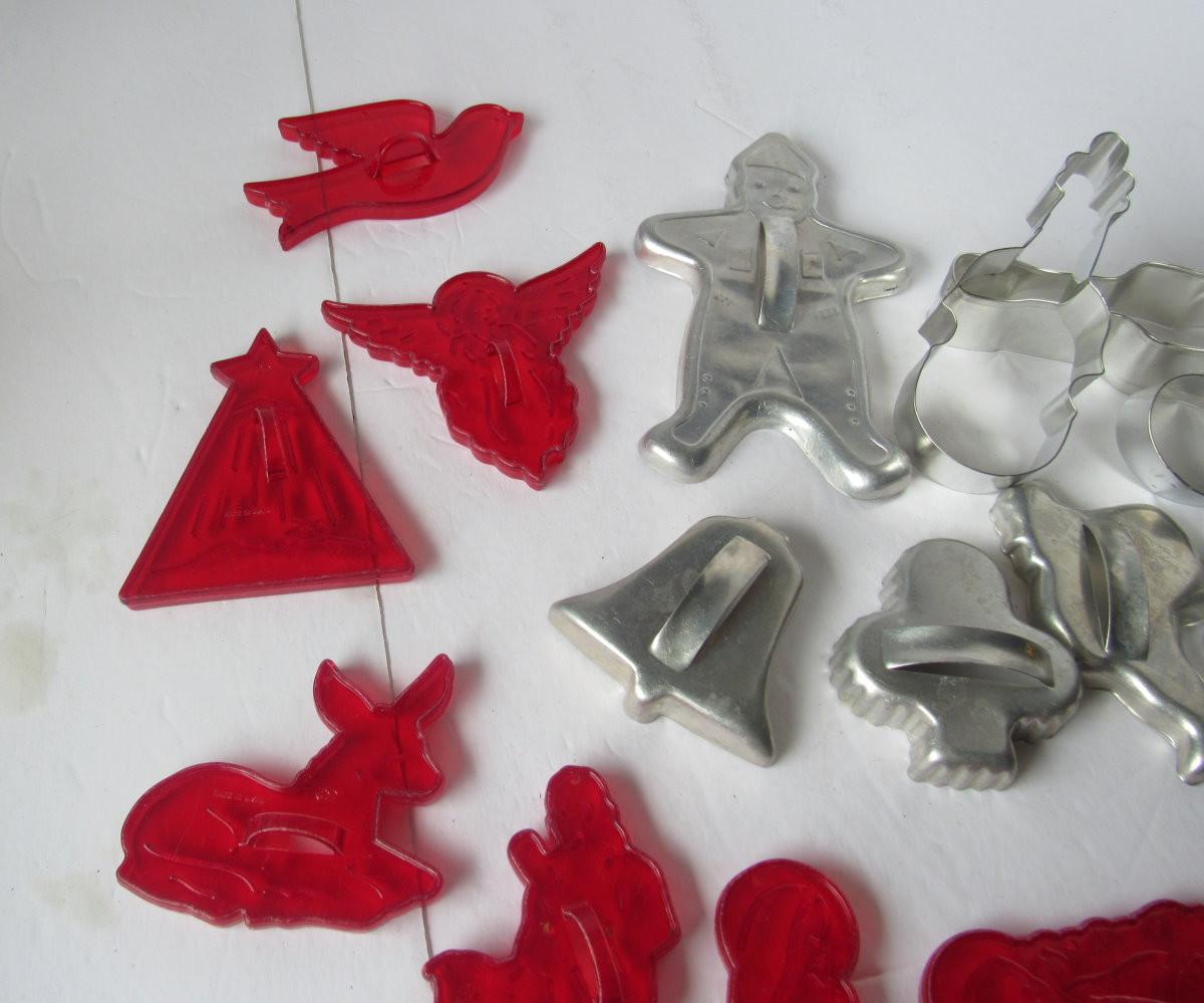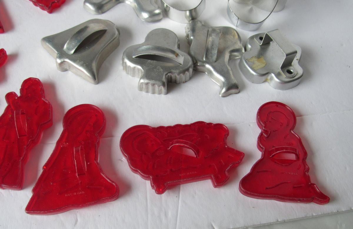 Lot 477: Nice Lot of Vintage Cookie Cutters, Red Plastic Nativity, More