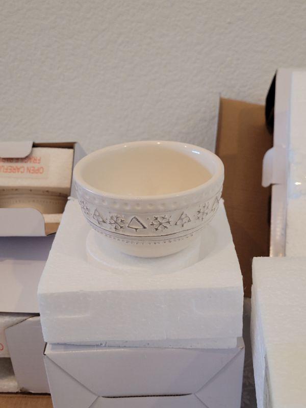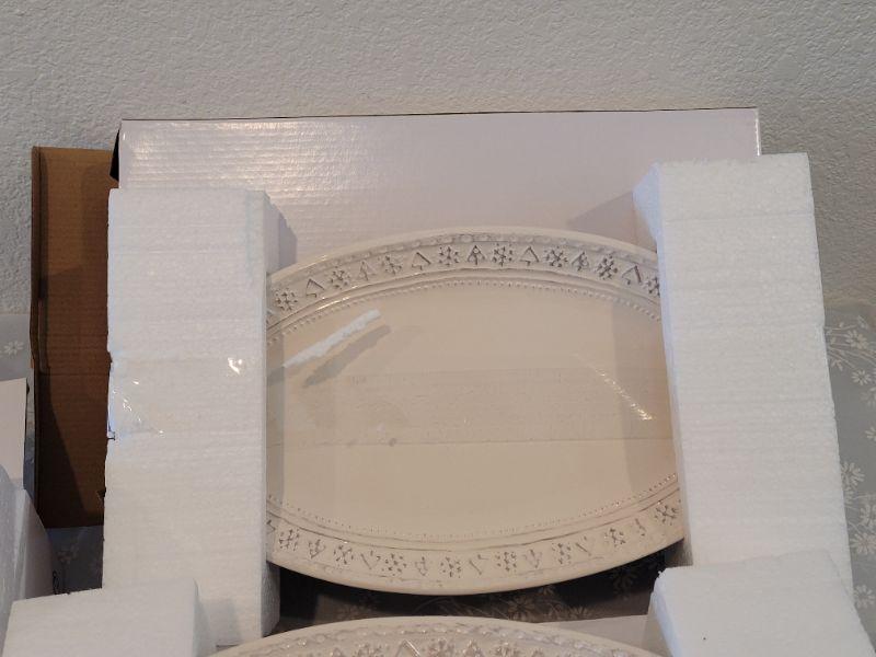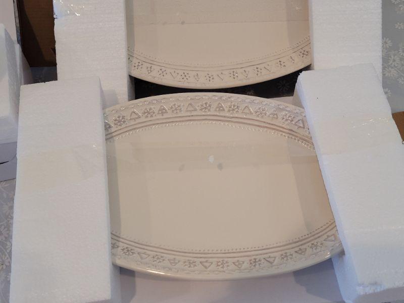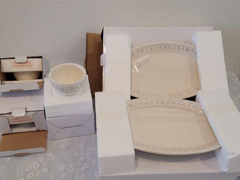 Lot 478: New in Boxes (2) Serving Platters and (3) Small Dip or Condiments Bowls