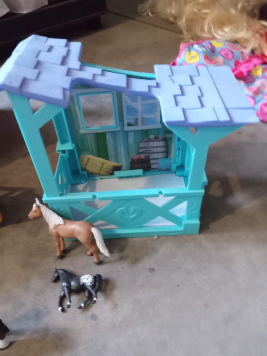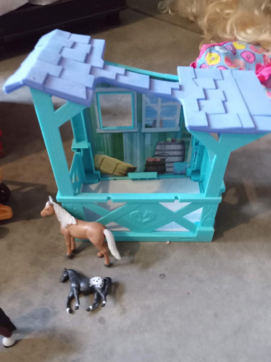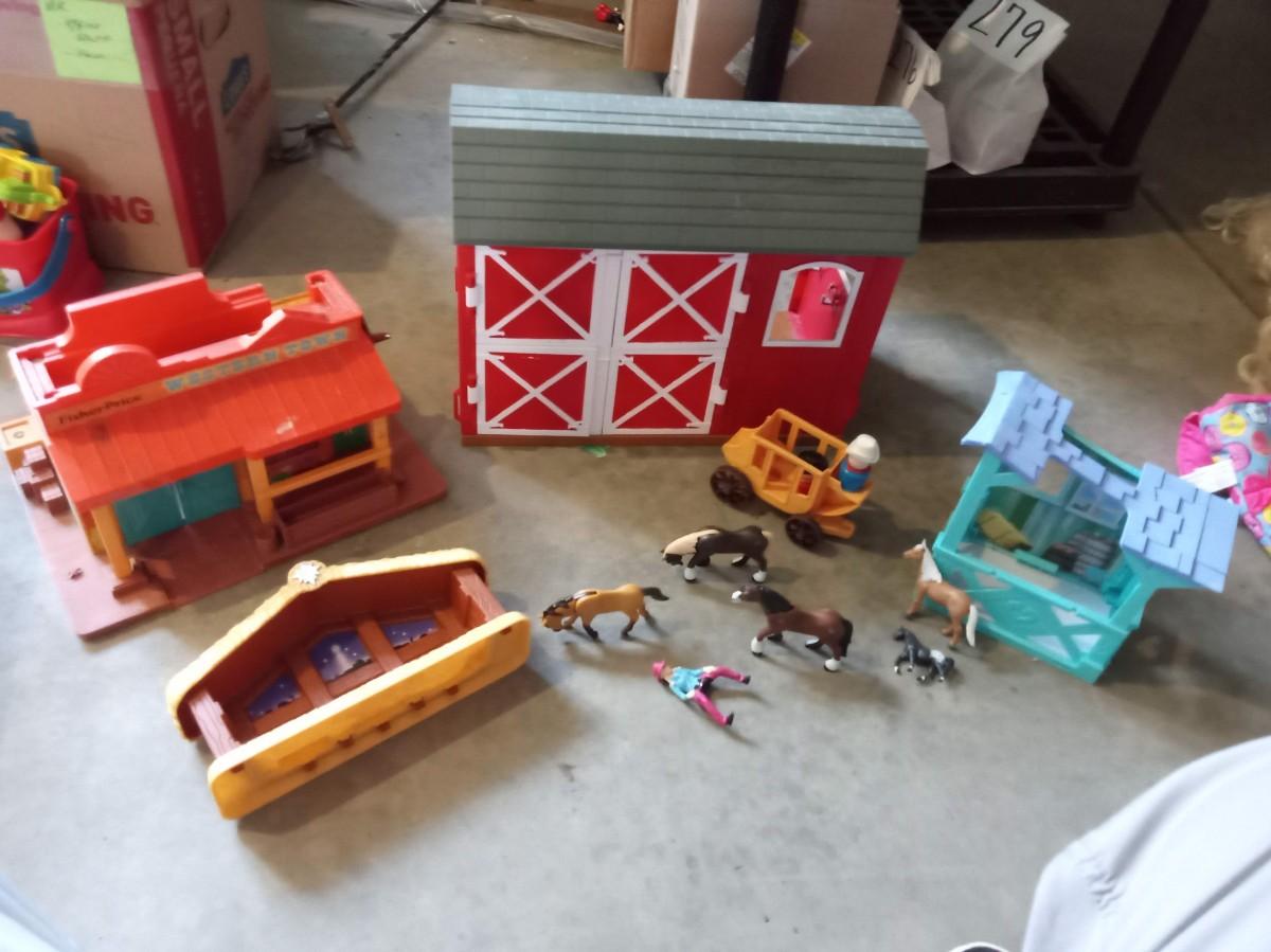 LOT 478  TOY PLAY BUILDINGS, HORSES AND LITTLE PEOPLE TOY  (G)