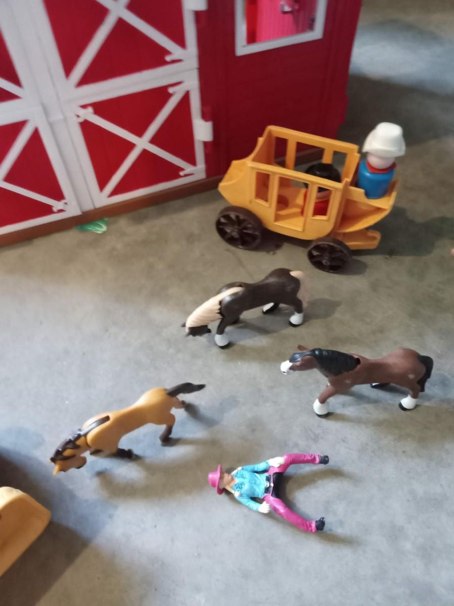 LOT 478 TOY PLAY BUILDINGS, HORSES AND LITTLE PEOPLE TOY (G)