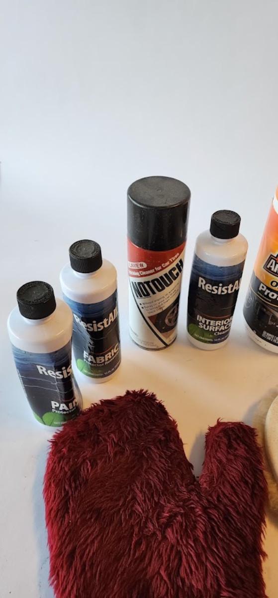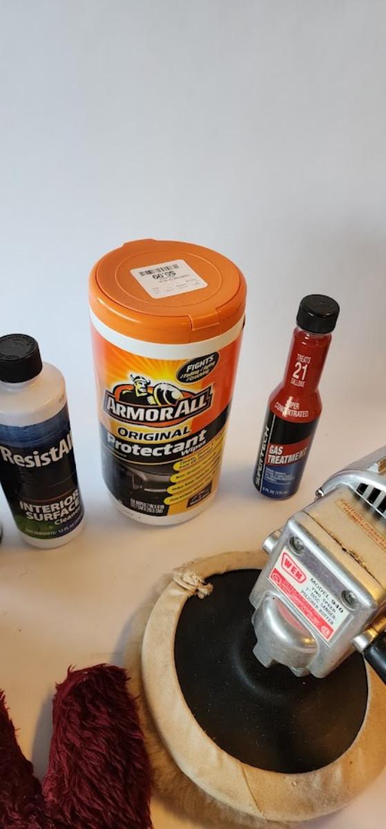 Lot includes: Car polisher, armor all wipes, auto cleaners, extension cord, and gloves