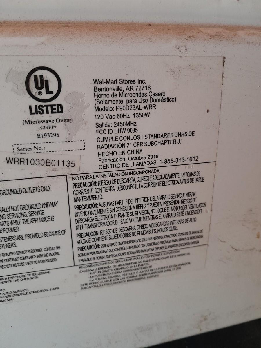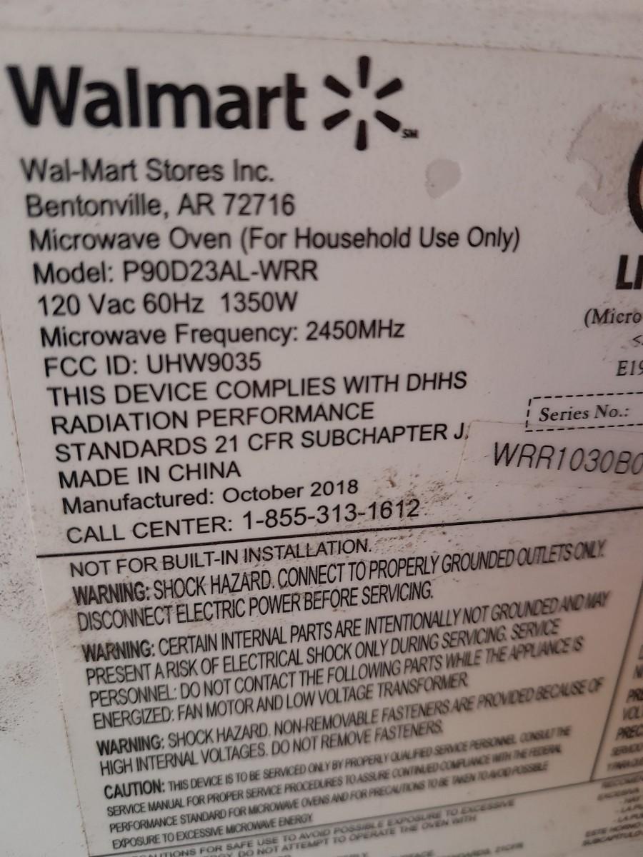 RED WALMART MICROWAVE MODEL P90D23AL-WRR