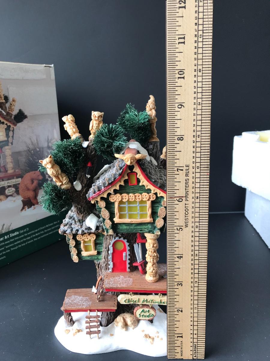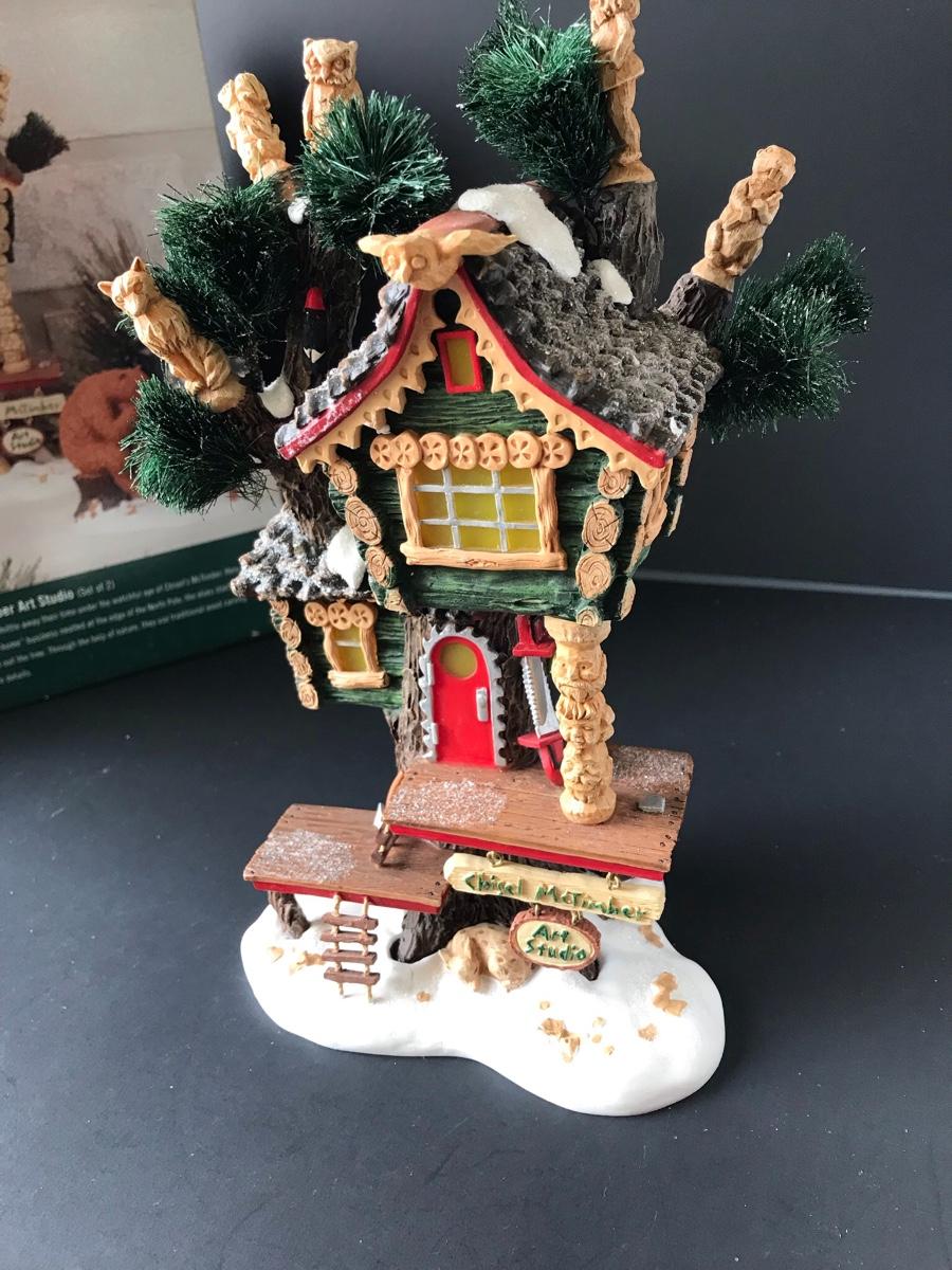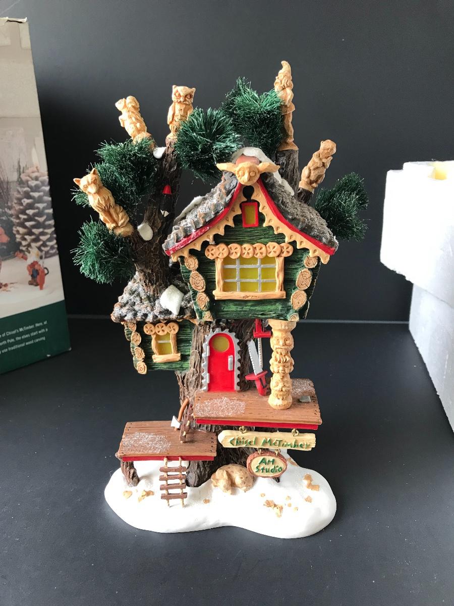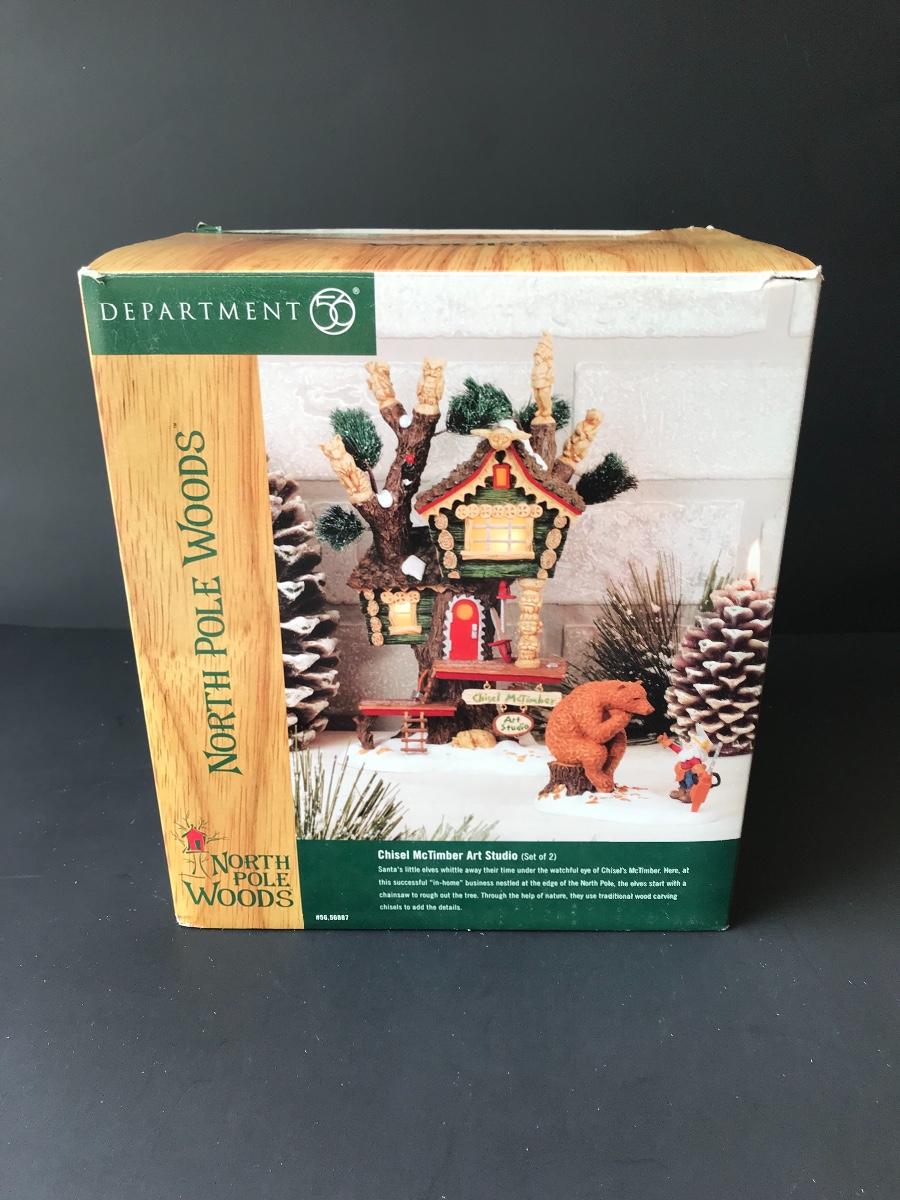 Chisel McTimber Art Studio - Department 56 - North Pole Woods. Figure and power adapter are missing. All Holiday items in this auction are as-seen. The client collected a lot of holiday pieces and some are new in box, some were displayed once and come with original box, and some have been displayed and come with no box. They are all pre-owned in some fashion and have been stored in an attic or on shelf in library. Please see all pictures. The pictures show condition, measurements if taken, and what is included in the lot. Due to the large amount that we photograph and the time frame, we are not always able to take measurements. All items unless noted, are pre-owned and have been used. Thank you