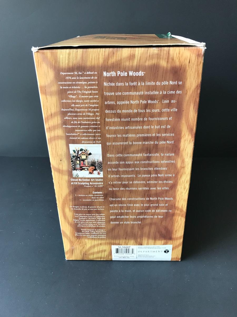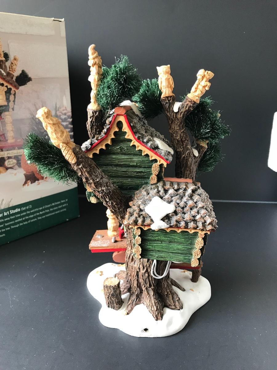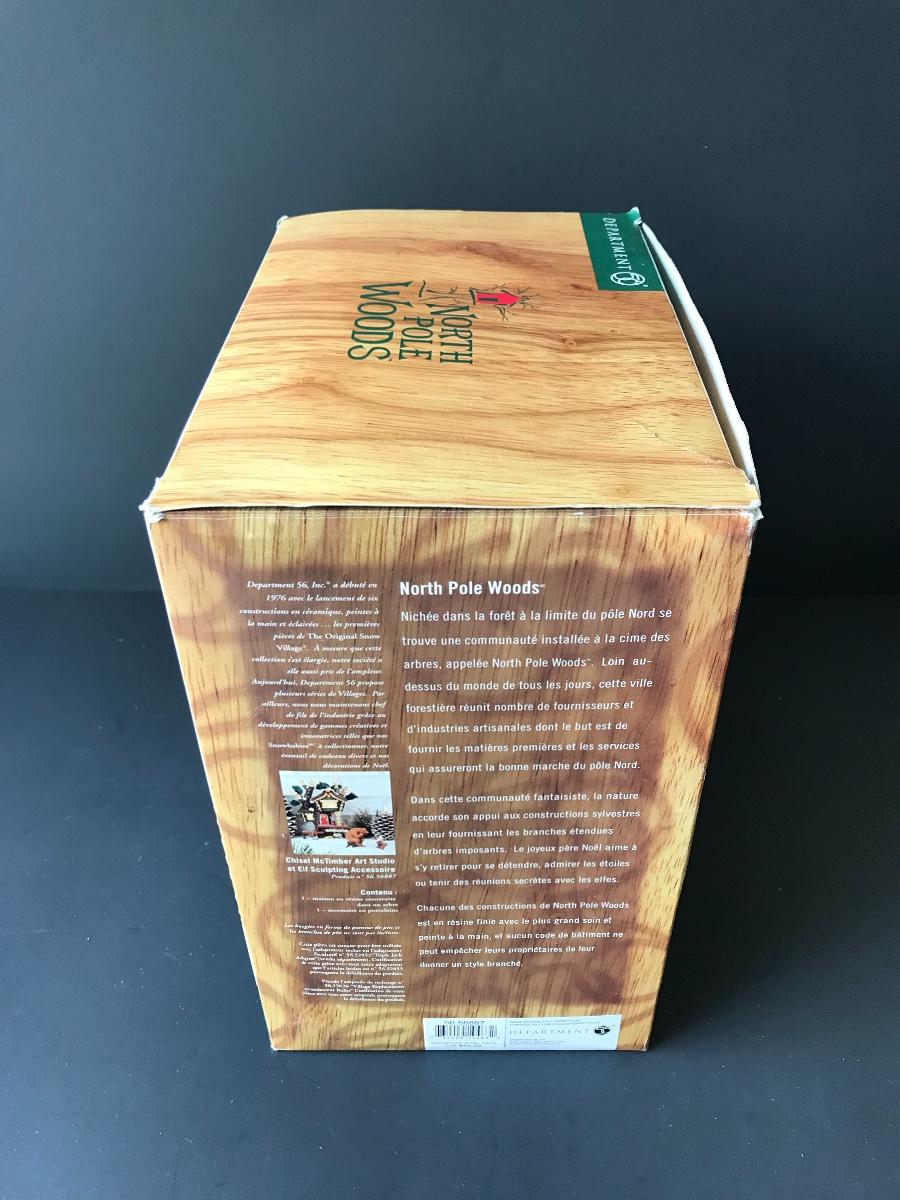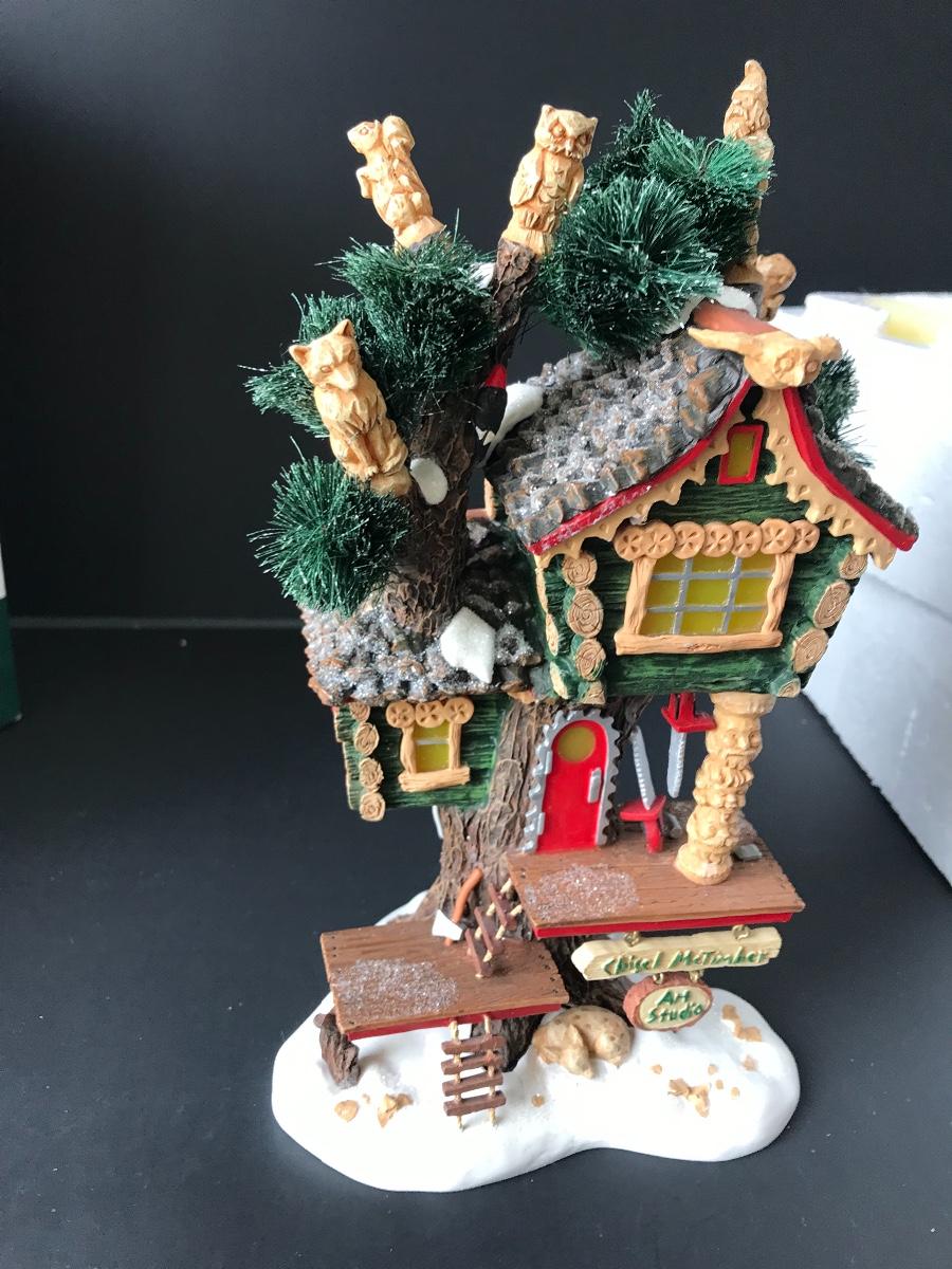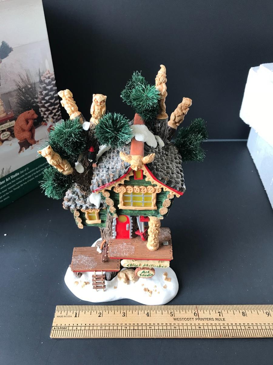 Chisel McTimber Art Studio - Department 56 - North Pole Woods. Figure and power adapter are missing. All Holiday items in this auction are as-seen. The client collected a lot of holiday pieces and some are new in box, some were displayed once and come with original box, and some have been displayed and come with no box. They are all pre-owned in some fashion and have been stored in an attic or on shelf in library. Please see all pictures. The pictures show condition, measurements if taken, and what is included in the lot. Due to the large amount that we photograph and the time frame, we are not always able to take measurements. All items unless noted, are pre-owned and have been used. Thank you