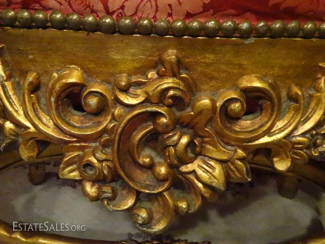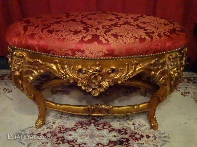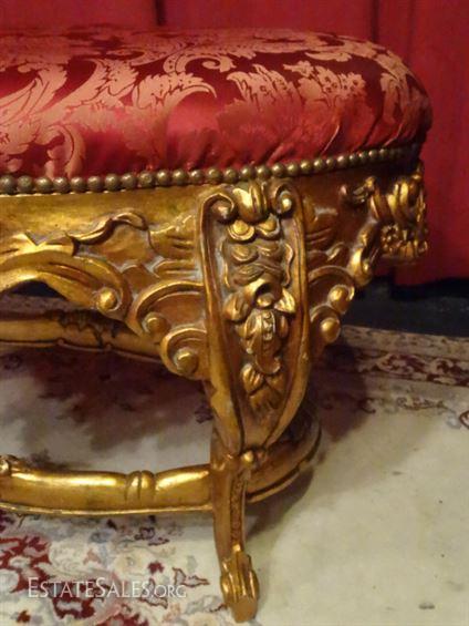 LOT 47A: LARGE LOUIS XIV STYLE ROCOCO OTTOMAN, GOLD GILT WOOD OVAL BASE