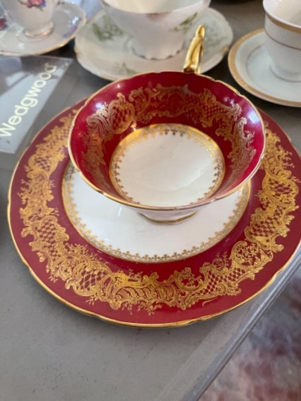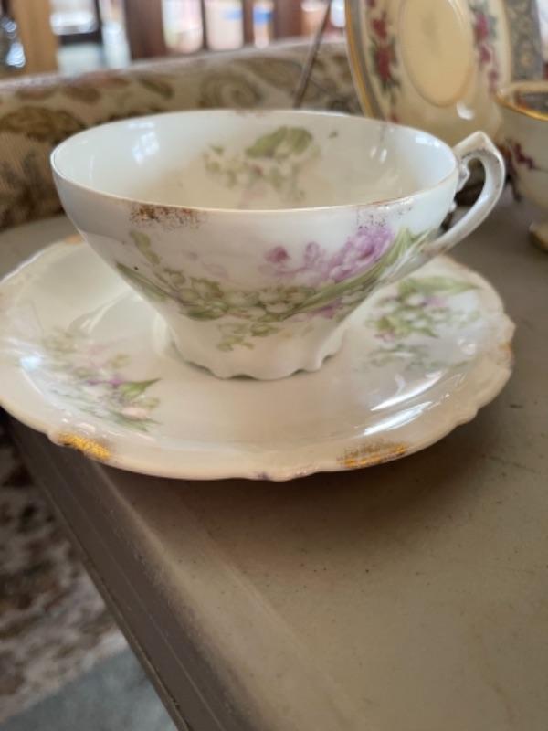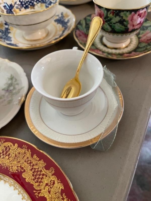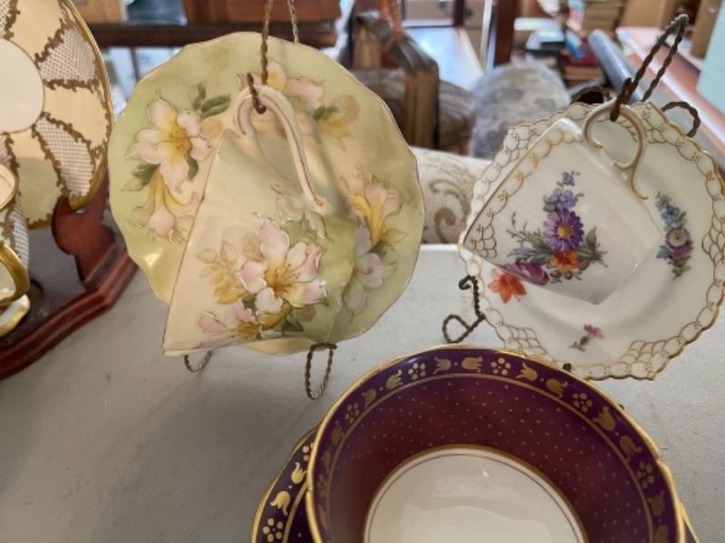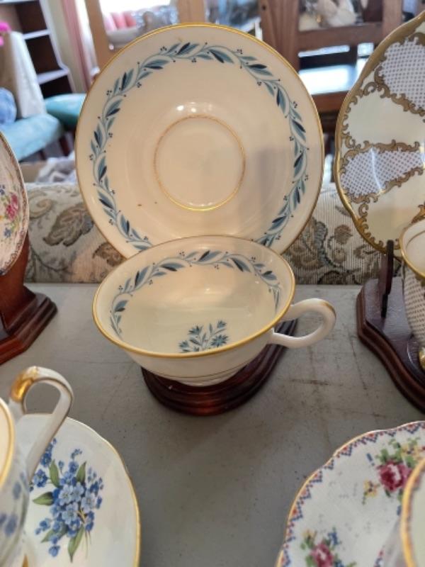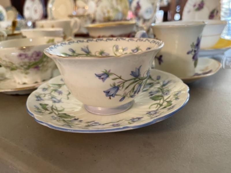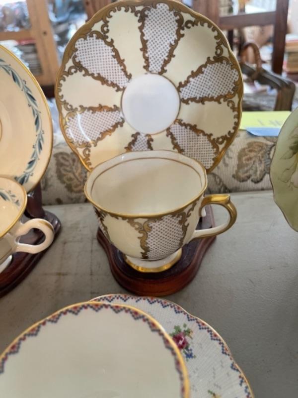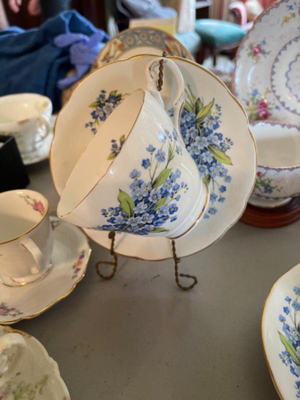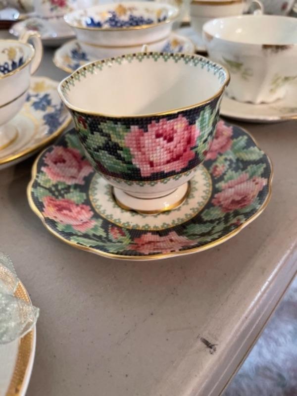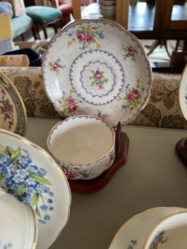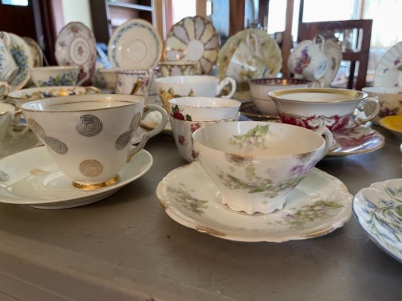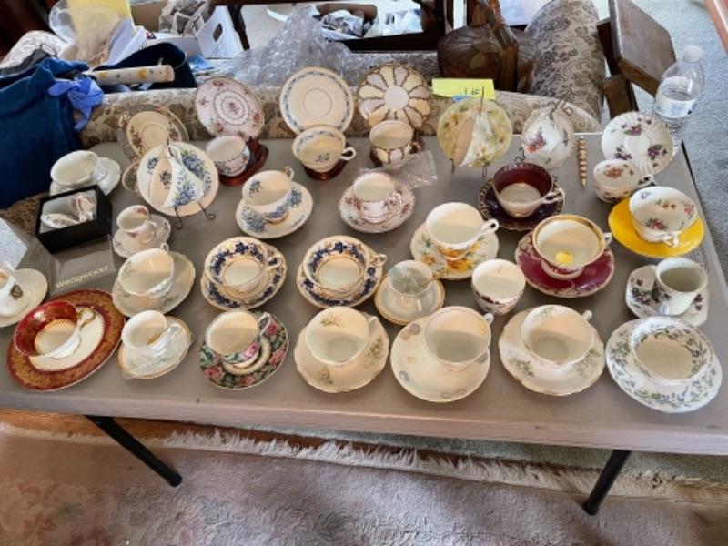 Lot 47DR. Thirty-two vintage cups and saucers (Pallidan, Royal Albert, Hendrik, Coalport, Shelley, etc.--$150