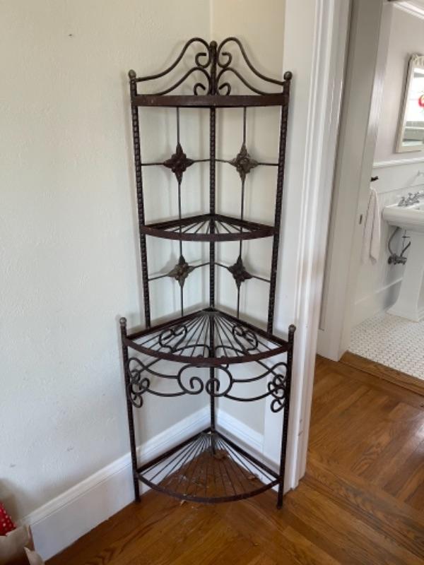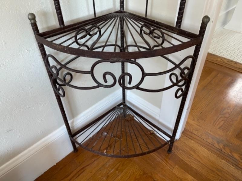 Lot 47LD. Wrought iron corner shelf (67”)--$55